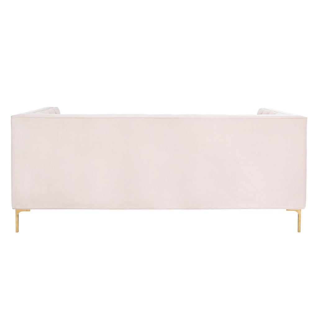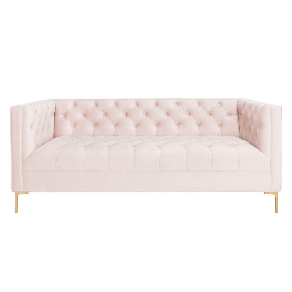 This deluxe velvet tufted sofa was inspired by bold, contemporary Italian style. An instant focal point in any living room, its sophisticated tufting highlights its velvet upholstery. Its gold metal finish illuminates its modern legs.
