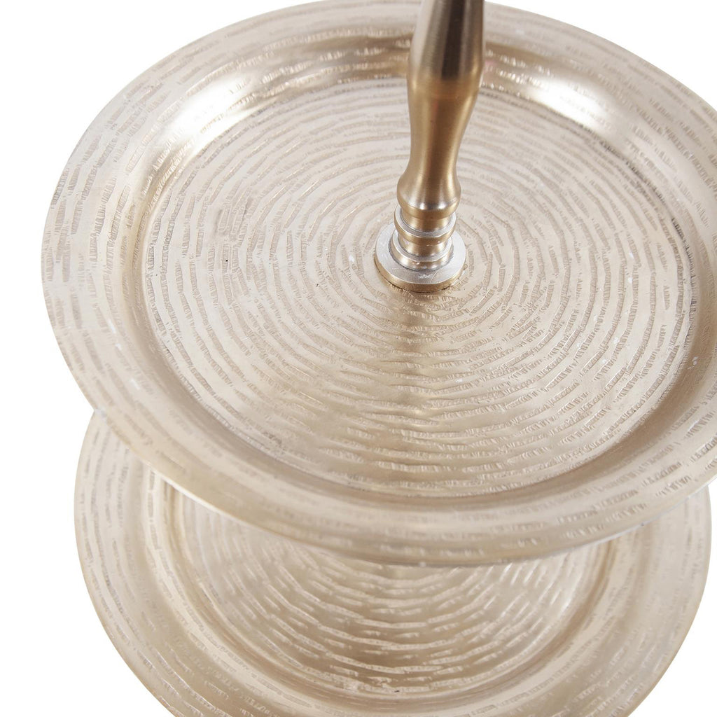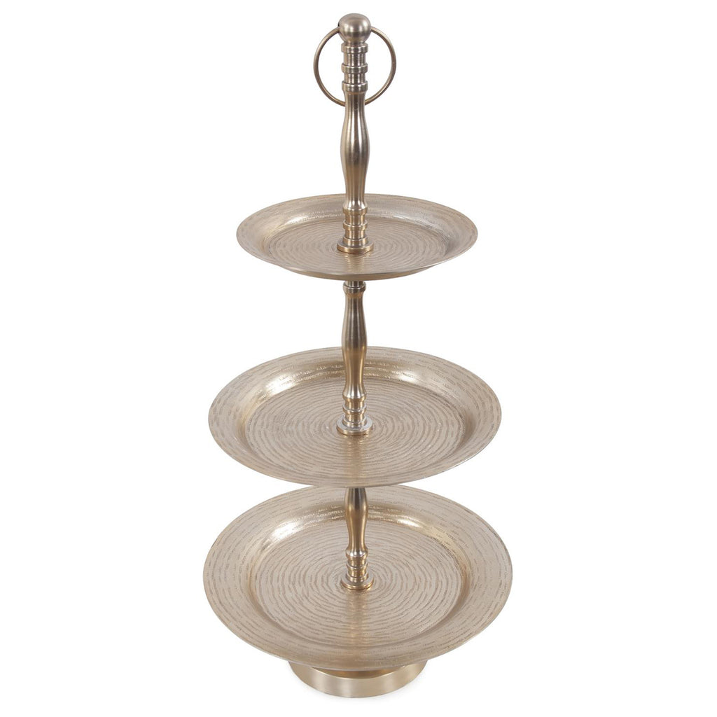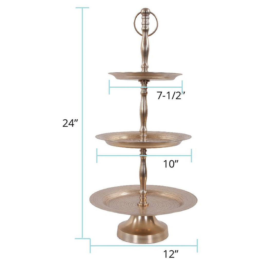 The Em Dash Collection is hand crafted and finished by expert artisans. The simple modern dash pattern also creates a hammered effect on the inside, that adds to the beauty of the design. Each piece can easily stand alone as a decorative accent or grouped together to show the contrast of dark and light elements. The three tiered service tray can be used as a centerpiece for special occasions or everyday to showcase a collection of keepsakes.