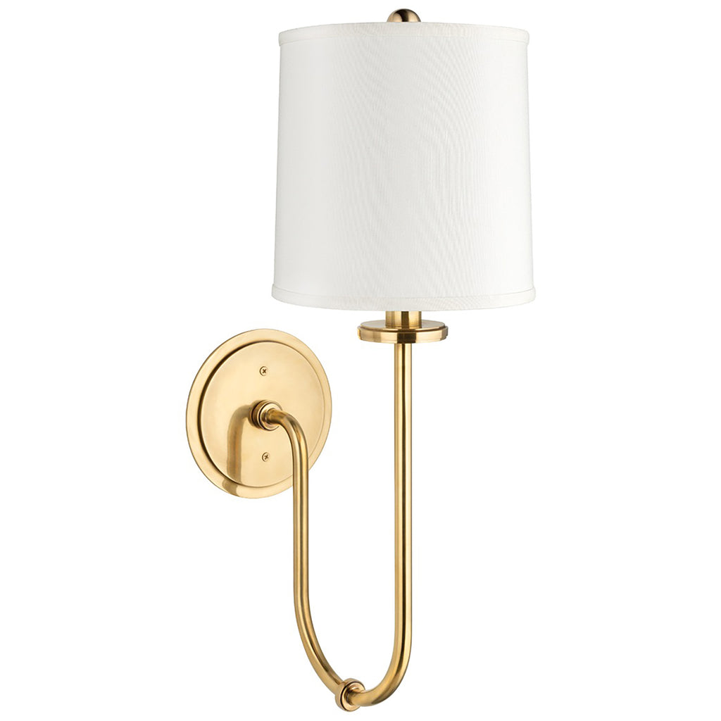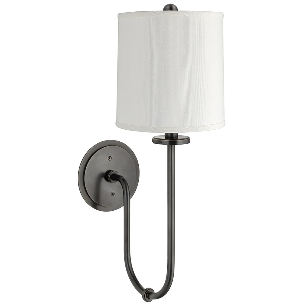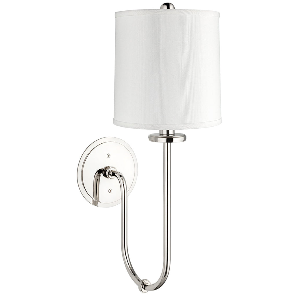 Dipping steeply from a circular backplate, Hudson Valley Lighting Jericho’s curved arm gives the sconce impressive stature. Extending over ten inches from the wall to accommodate a generously scaled shade, Jericho is an eye-catching accent piece designed for spaces in search of a statement maker. Fixture may only be installed as shown in picture