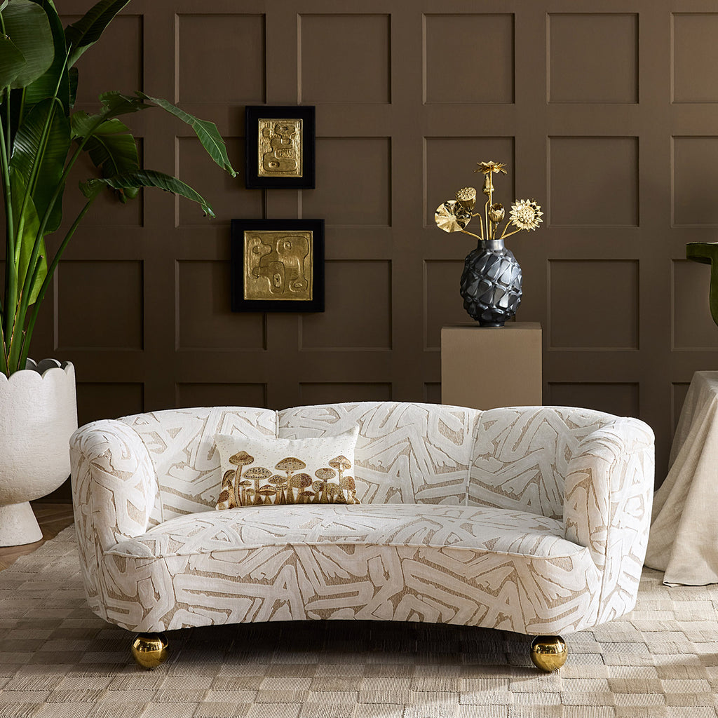 Our petite Parker’s inviting, gentle curve fits an array of shimmery, cozy, and dazzling upholsteries like a glove. We swapped traditional bun feet with polished brass orbs for a glint of glamour. A super comfortable, incredibly chic power piece that fits wherever you need a fabulous seat.
