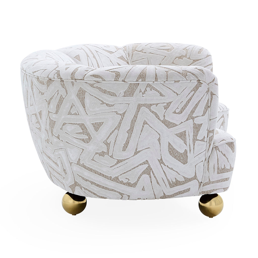 • Fabric: Abstract Natural (57% viscose, 35% polyester, 8% cotton; Cleaning code: S) cut velvet on a textural ground;, Polished brass orb feet