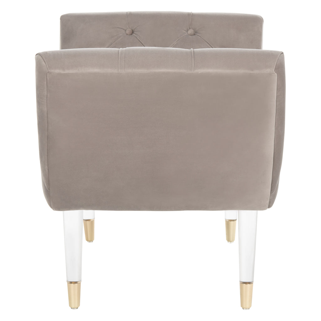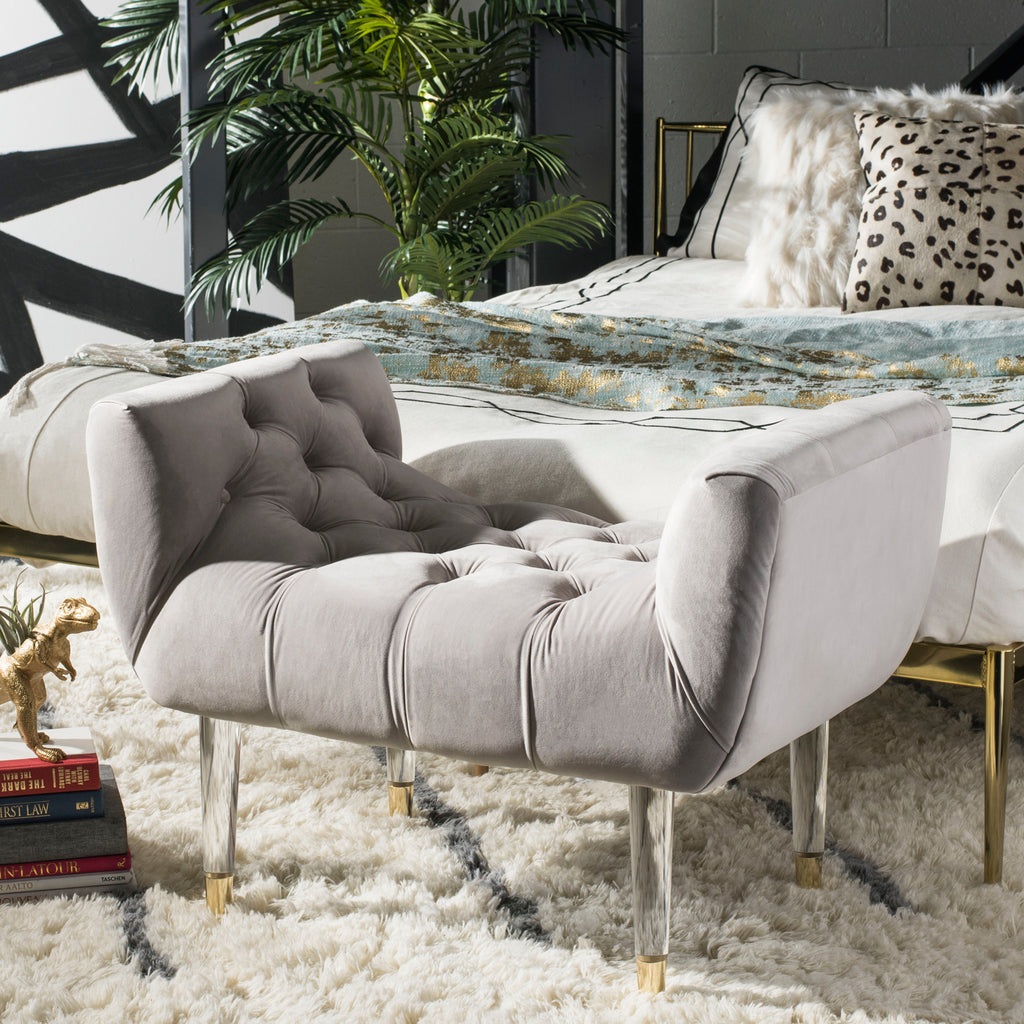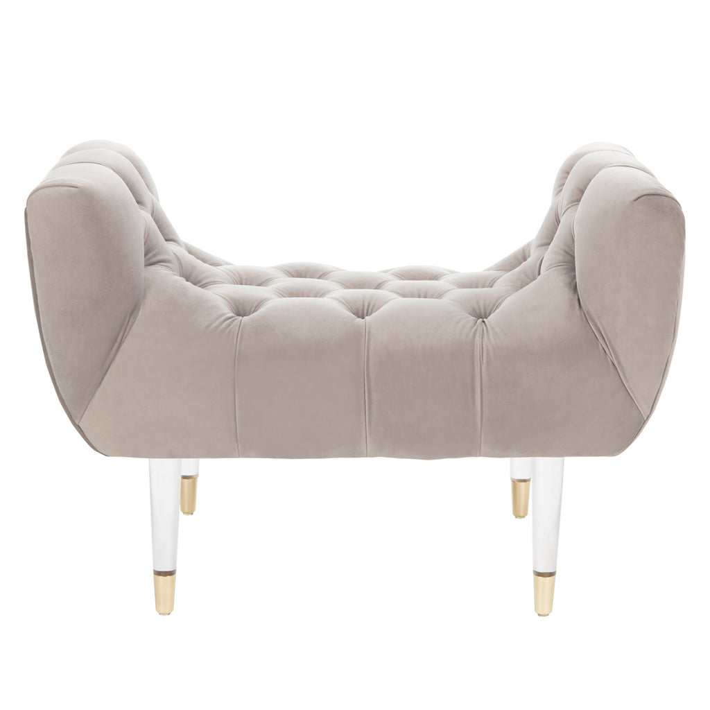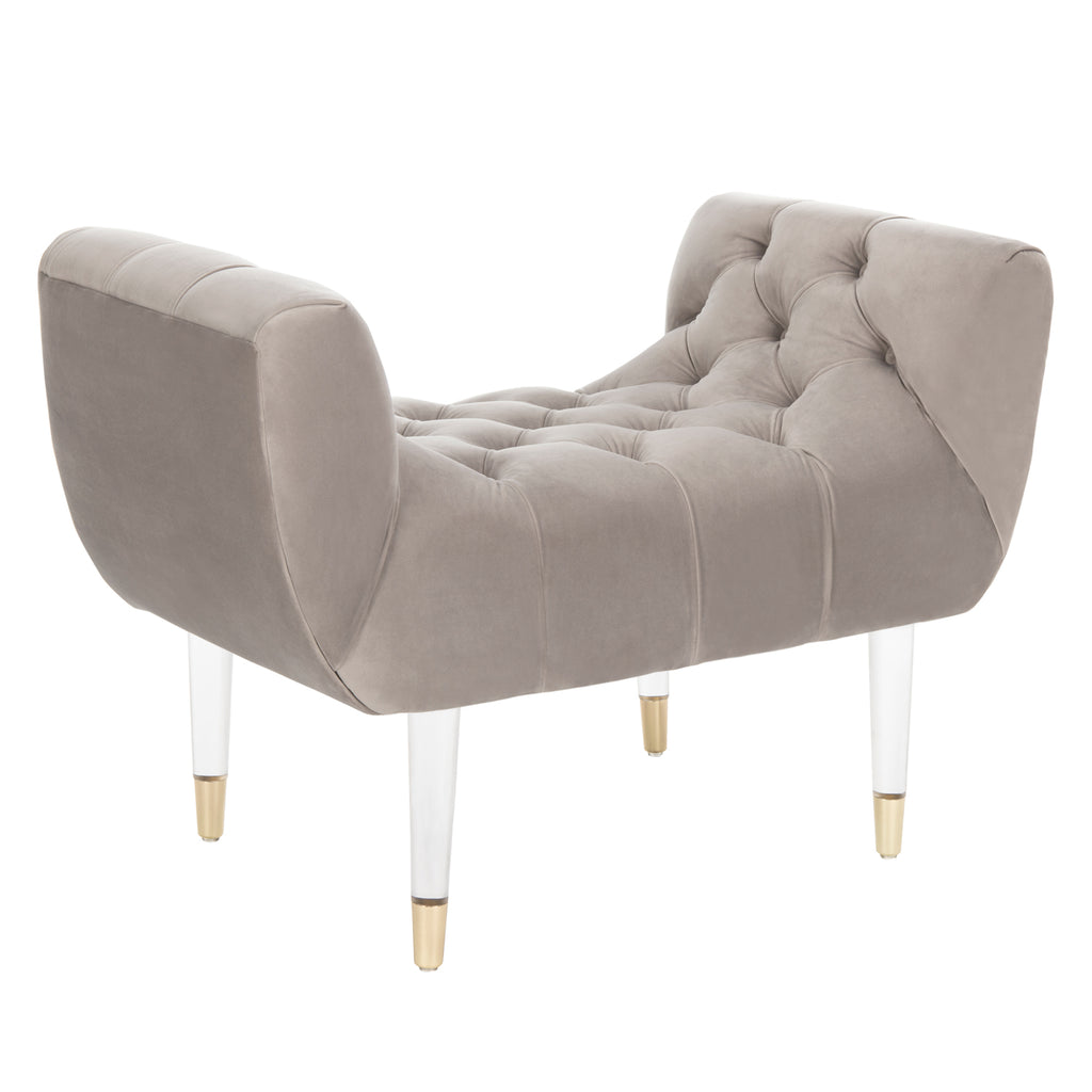 Dramatic and decadent, few can resist the charm of this contemporary tufted velvet Kennison acrylic bench. Ideal for the modern living room, its fine craftsmanship highlights the sinuous curves of its sumptuous upholstery and deluxe radiant gold finish.