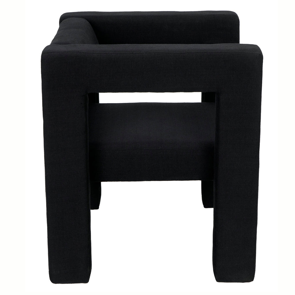 A minimalist and graphic statement, our Felix Chair features a fully upholstered frame, chunky Parson's style design, and black, cotton fabric.