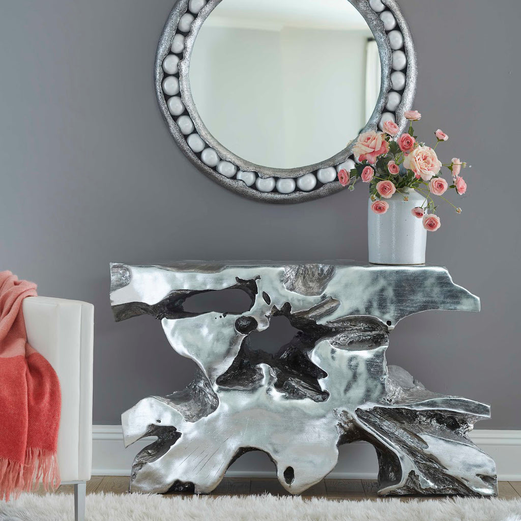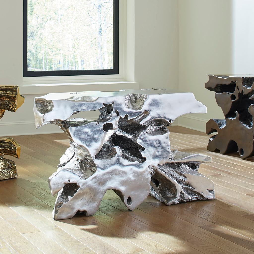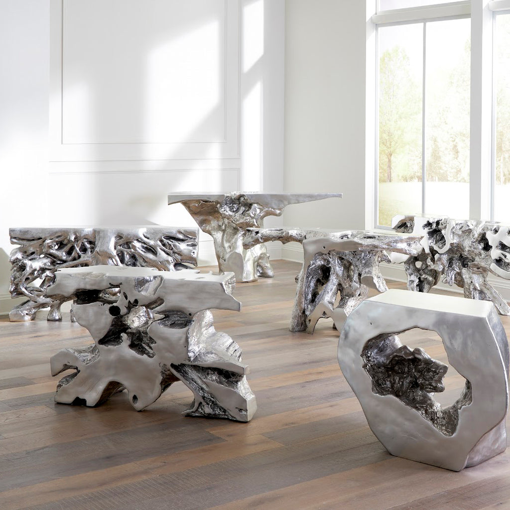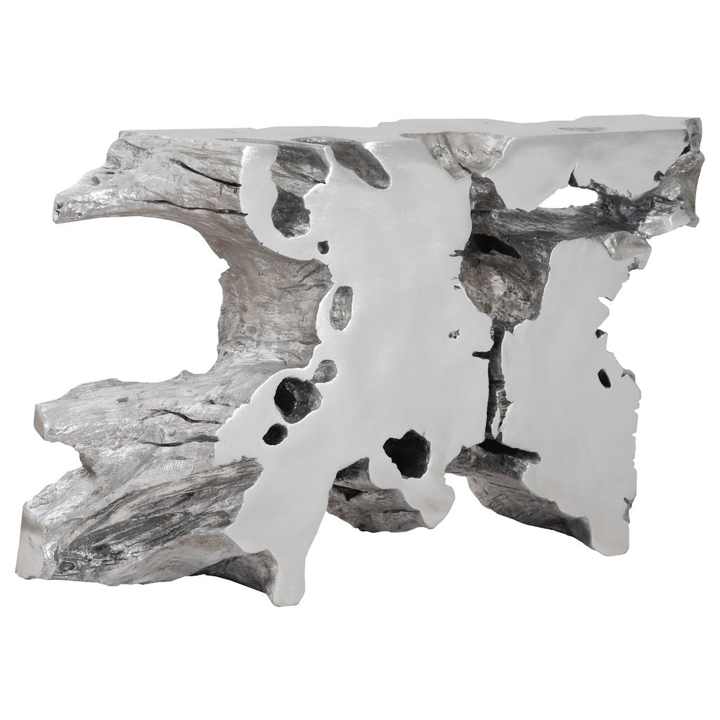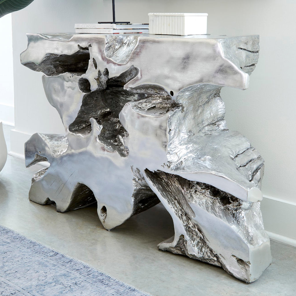 The Freeform Venice Console Table is made of composite in a handsome bronze finish. Cast from one of our favorite Origins pieces of wood, this tree-trunk console table personifies our ethos of modern organic. Just imagine how perfectly it will fit into the décor of a modern apartment or a sleek coastal condo! We also offer the table in several sizes and in a number of finishes that are equally stunning.
