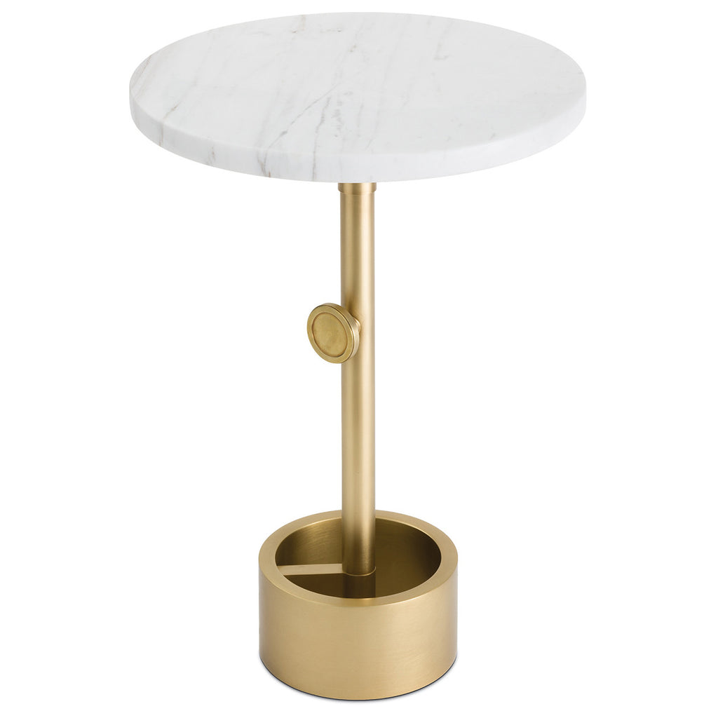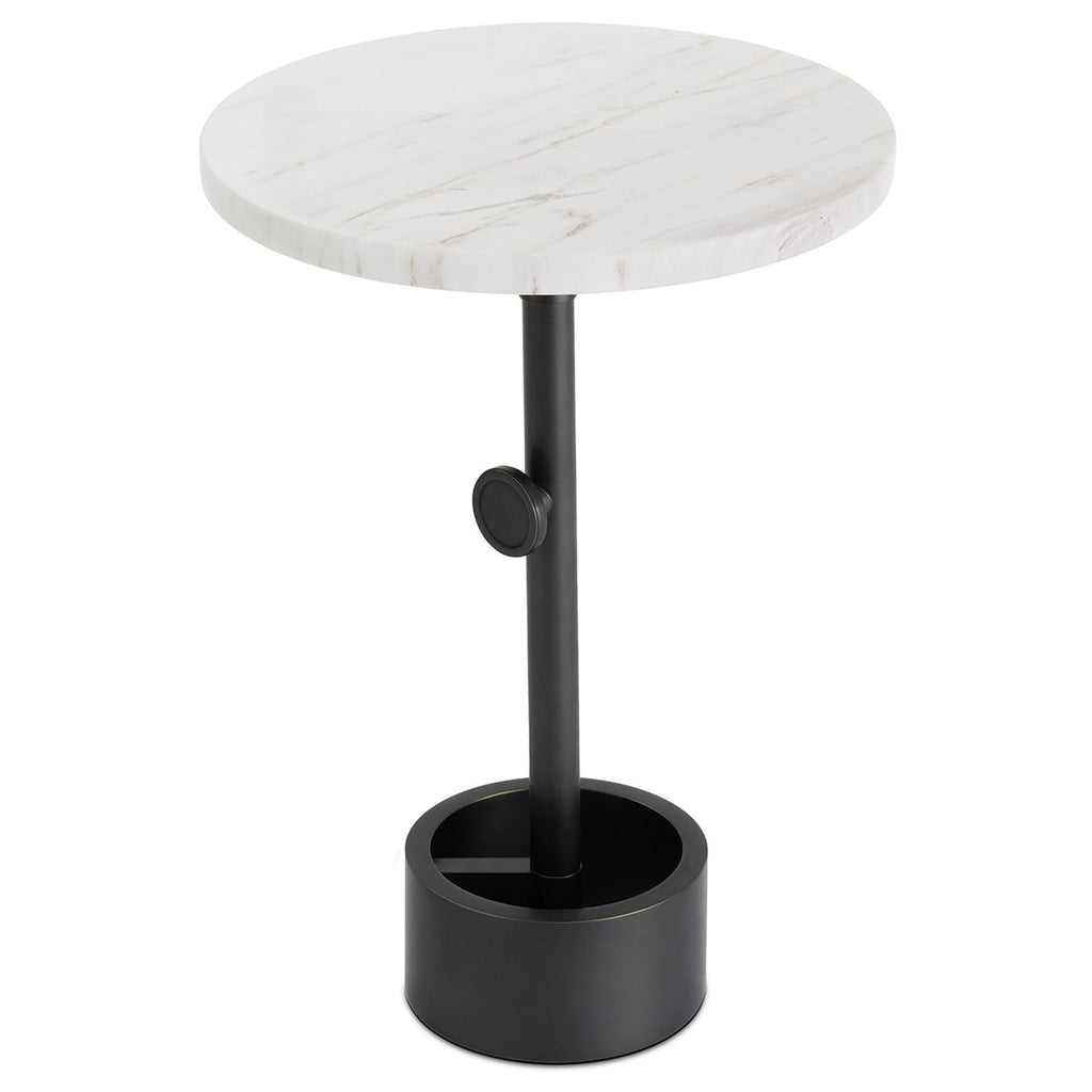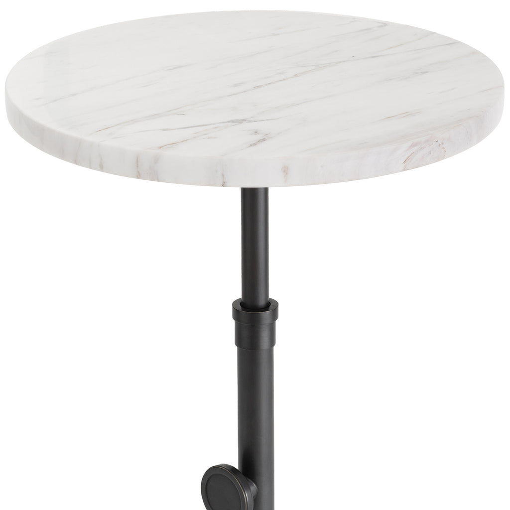 The Myles Accent Table fuses chunky, hardware-inspired elements with sleek modern marble. The table’s adjustable-height base plays on industrial style, while its marble top ties in classic elegance.