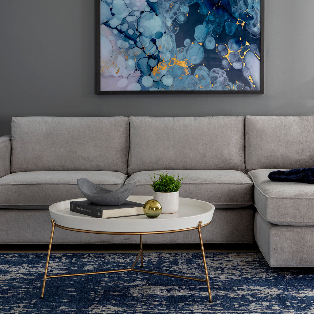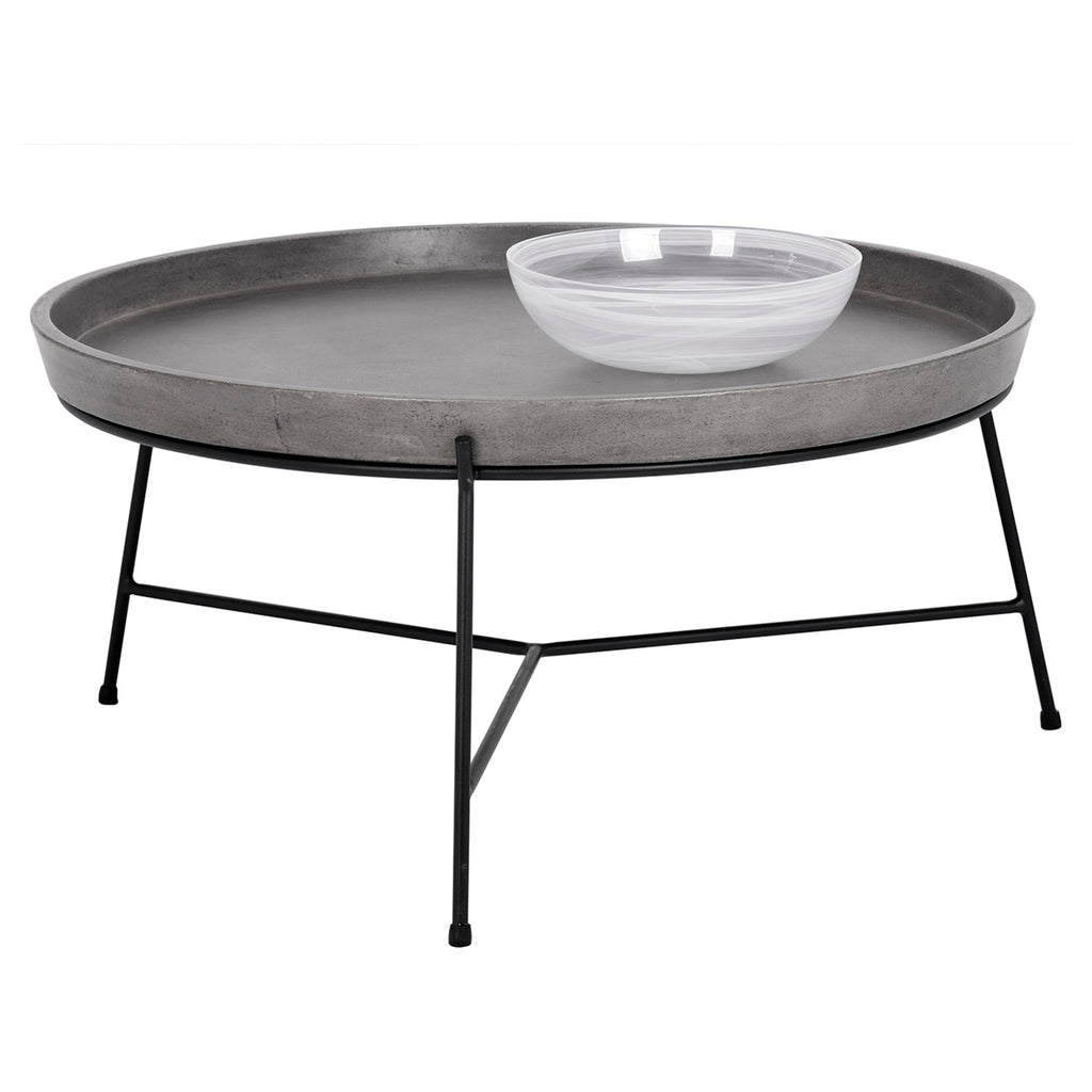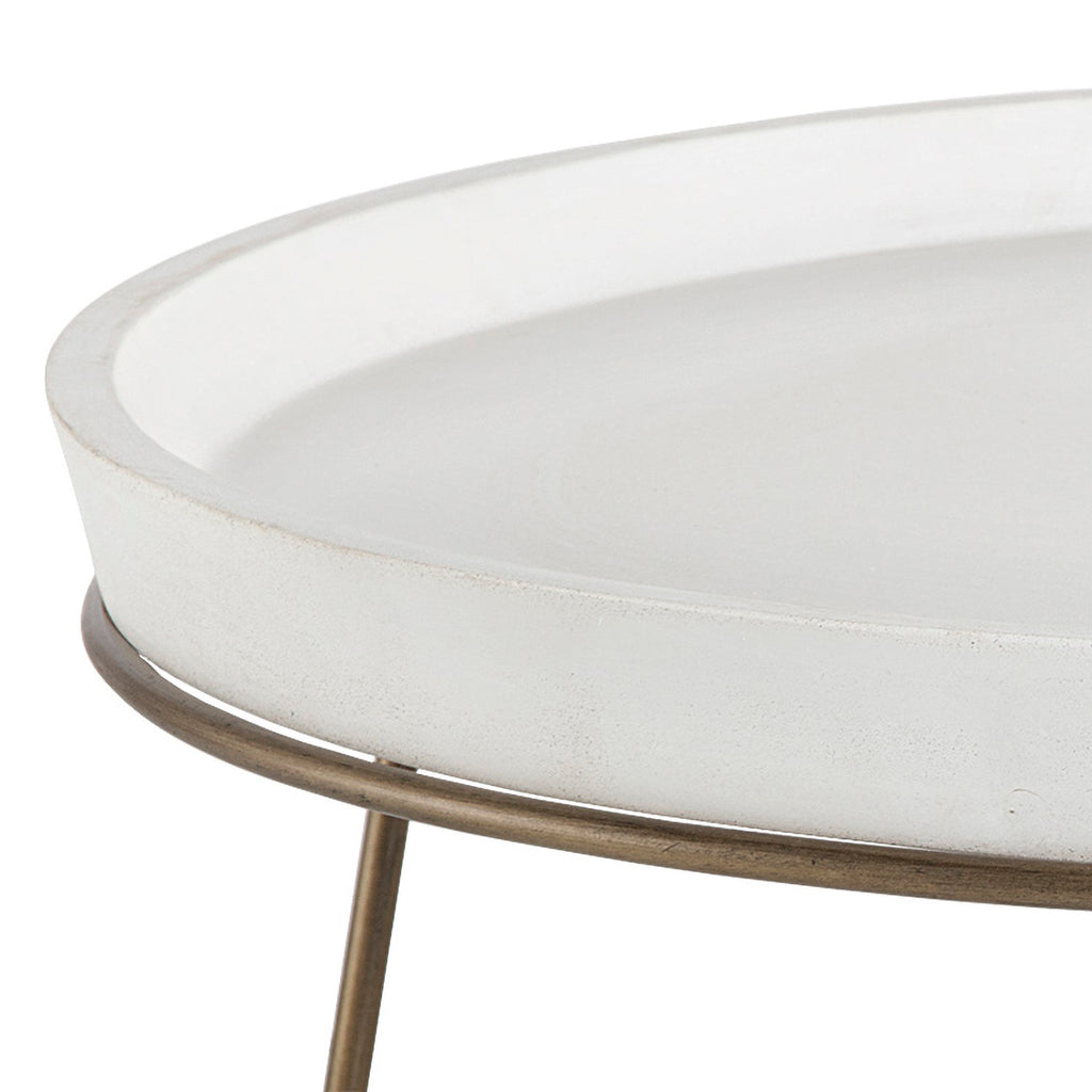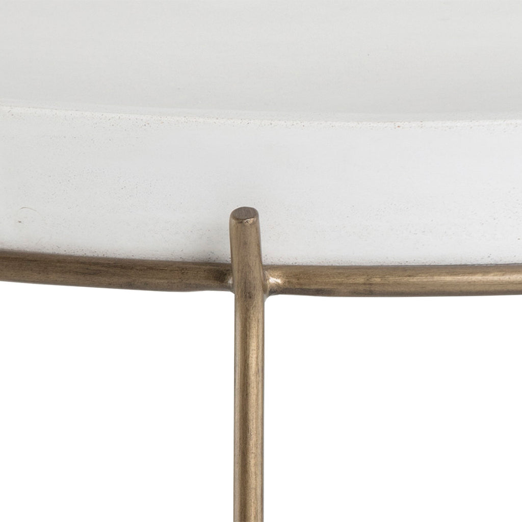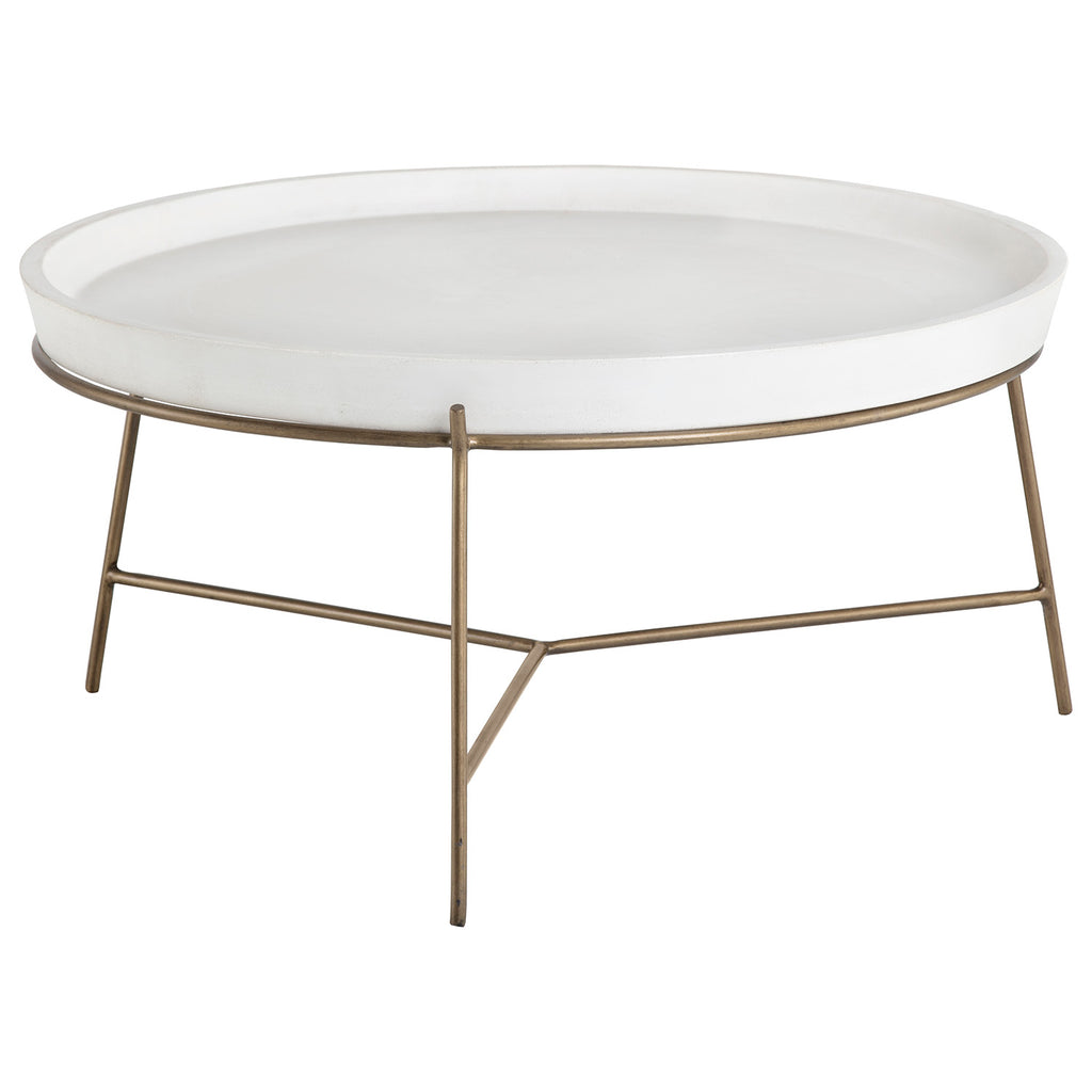 This interesting coffee table blends together an antique brass steel frame with a painted white concrete tray-like top. Try grouping together with the Remy end table for added dimension and functionality. Also stocked in anthracite gray concrete with a black metal frame.
