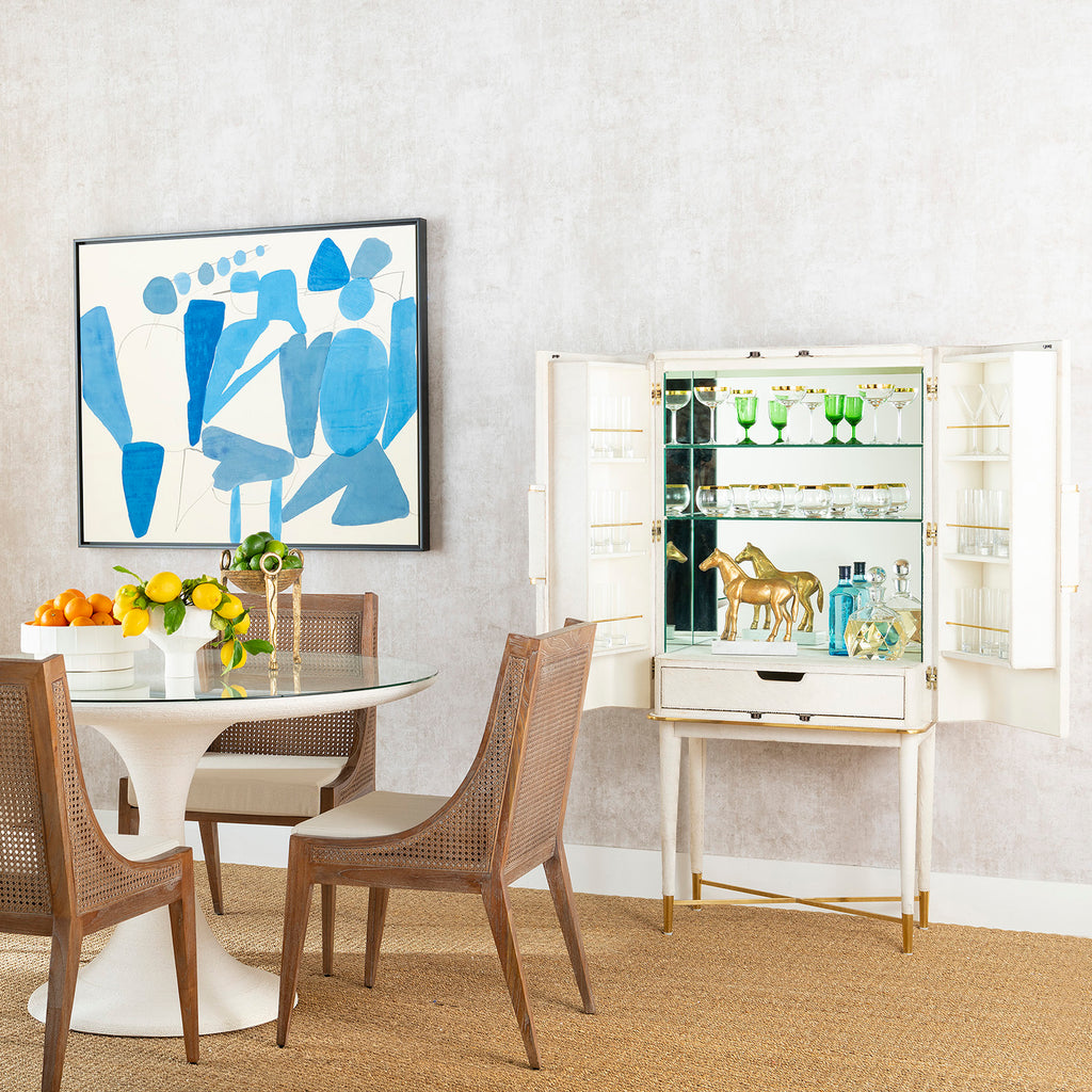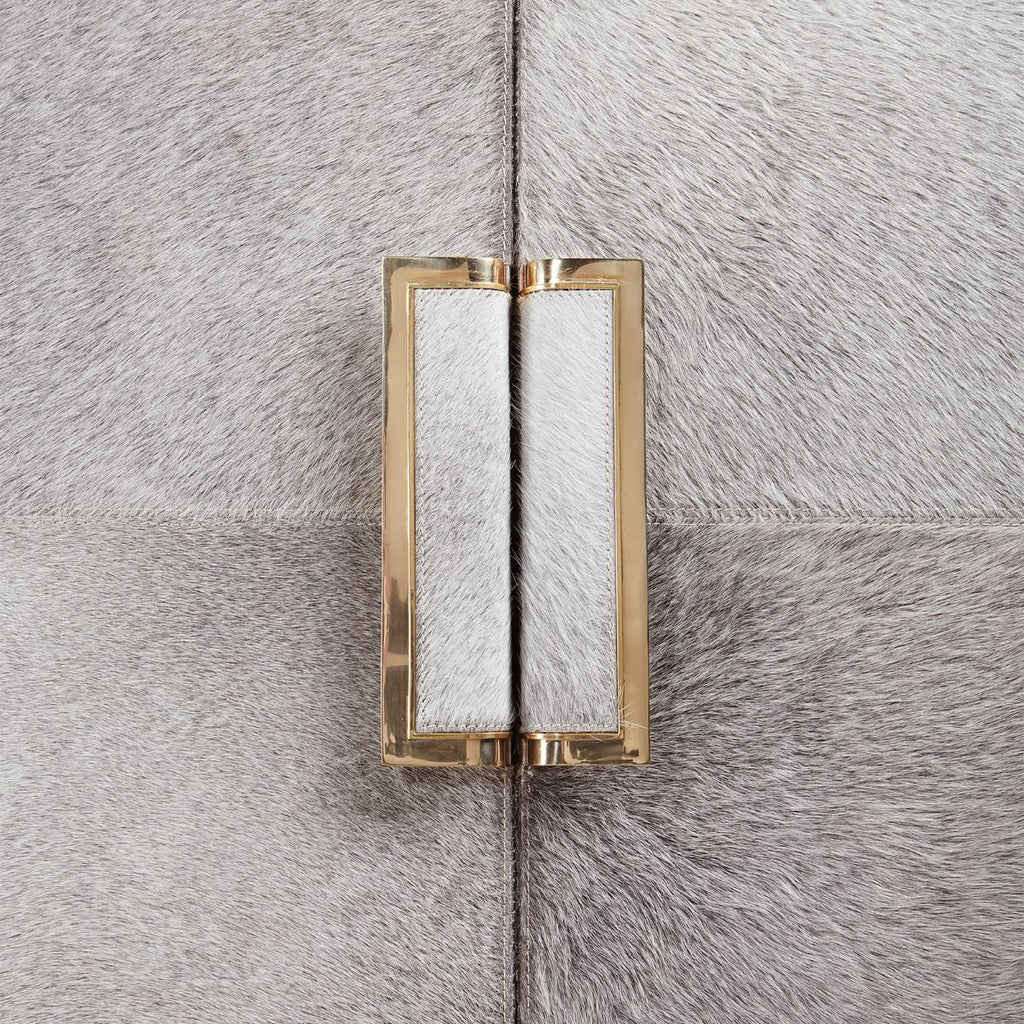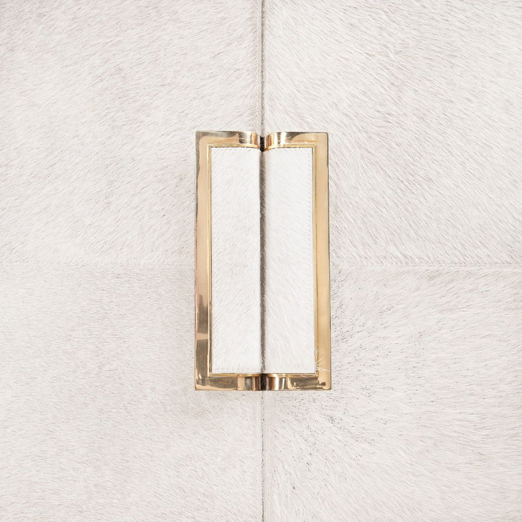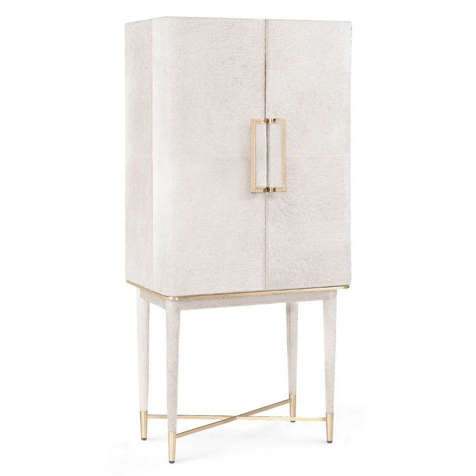 Entertaining and high design come together in the V&H Florian Tall Bar Cabinet. Wrapped in hair-on-hide with polished brass pulls, sabots and accents, the Florian provides a touch of glamour. Opening the cabinet reveals a silky micro-suede, glass-shelved and mirrored interior, which enhances the wow-factor of this piece.