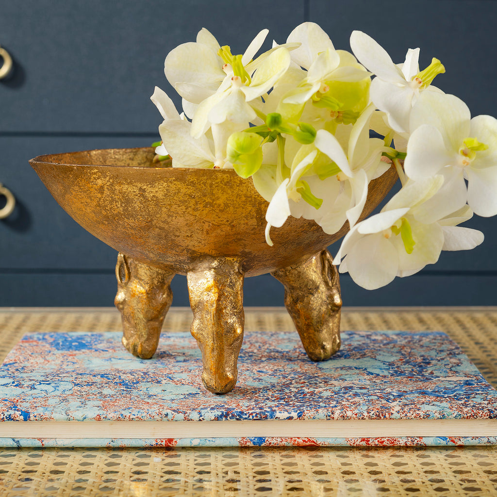 Bring the natural elements into your home with the Akai Bowl. This gold-leafed bowl rests on feet modeled after horse heads. This eye-catching bowl will be the centerpiece of your tables and your conversations.