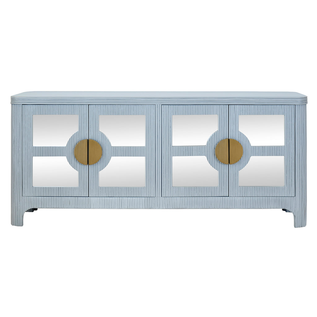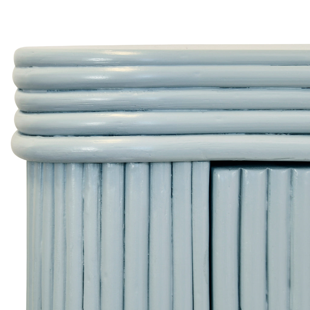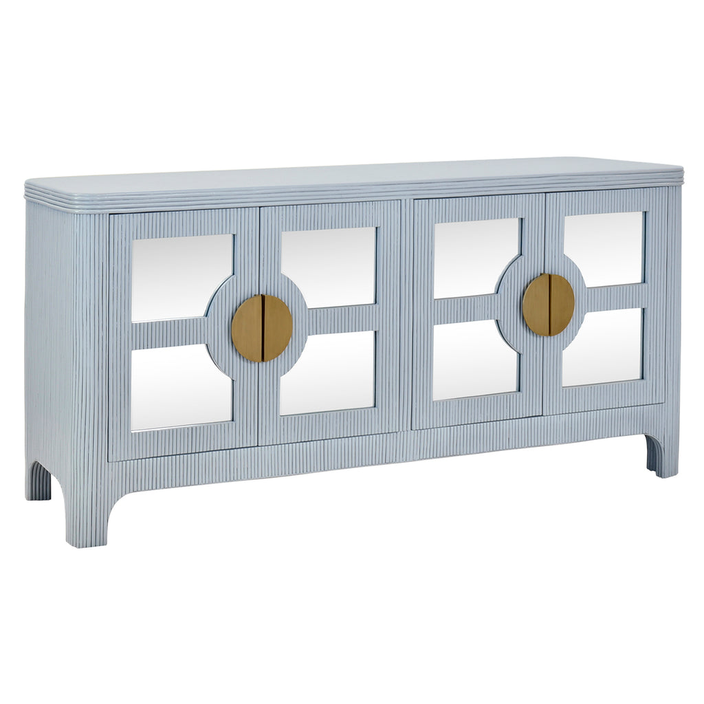• Four door mirror front rattan reeded case buffet in painted light blue