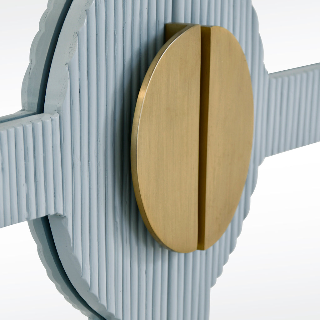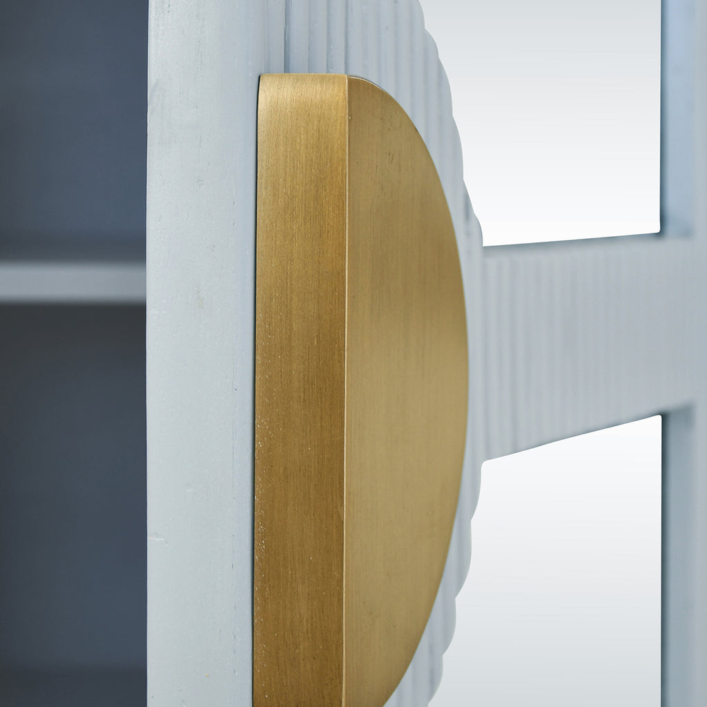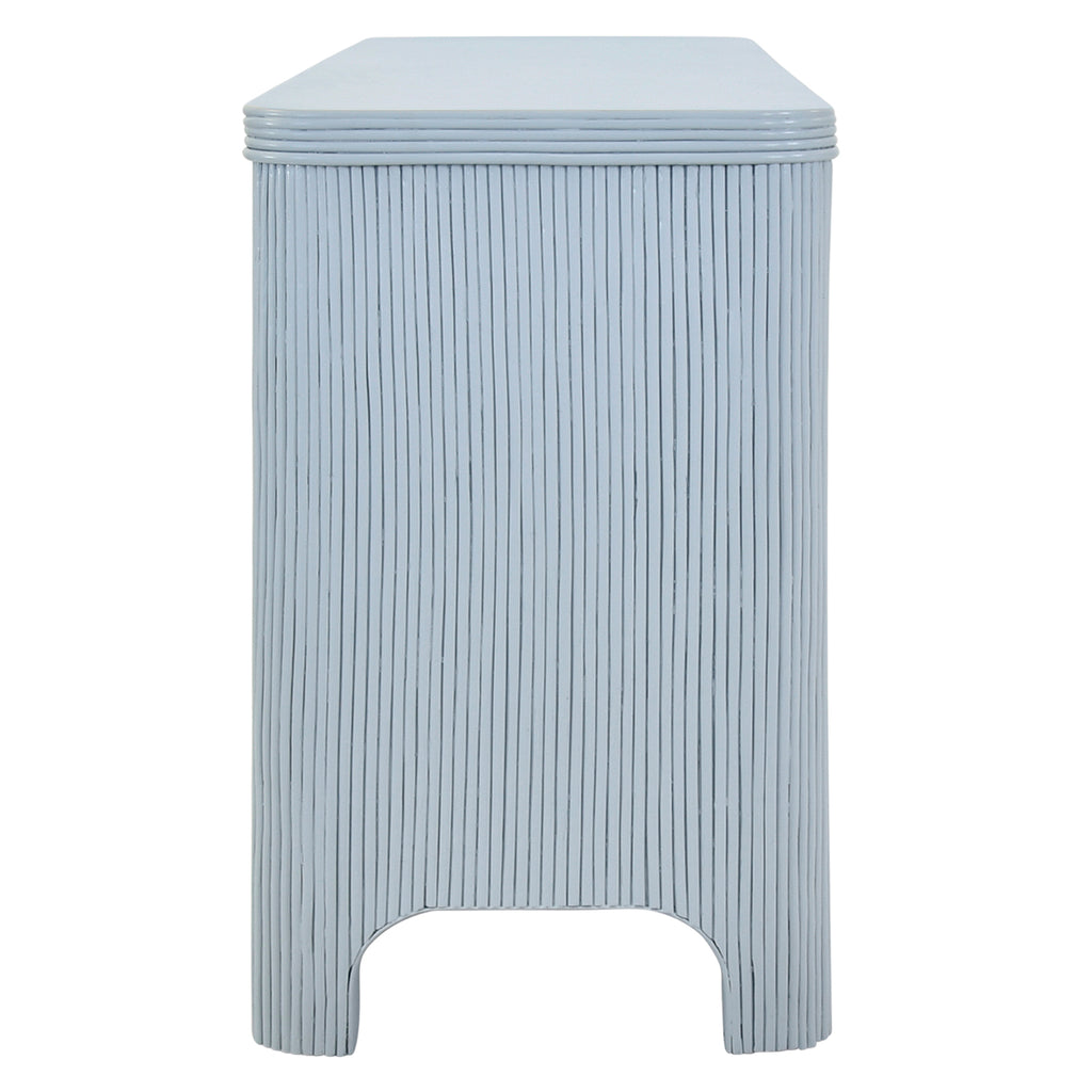 • Four door mirror front rattan reeded case buffet in painted light blue