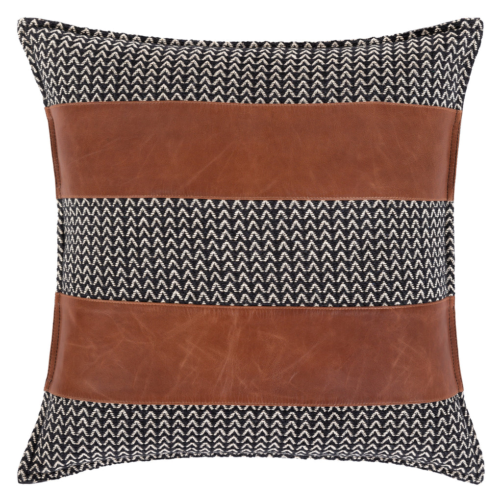 Add a touch of rustic elegance to your home with the Boardman Pillow Collection. The meticulously woven construction of these pieces boasts durability and will provide natural charm into your decor space. Made with cotton and leather in India. Spot clean only, line dry.