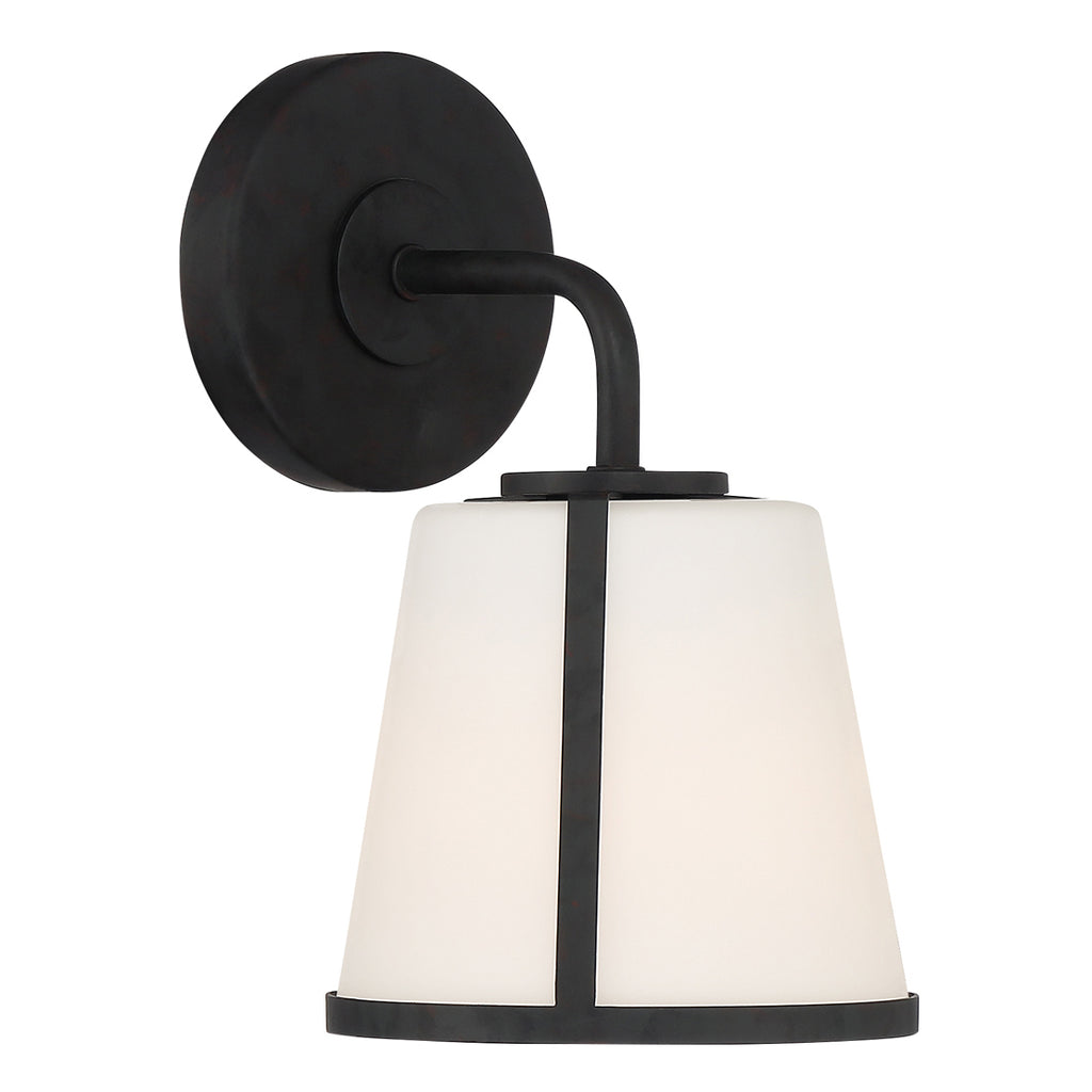 Crystorama is known for its standout lighting, which is exceptional in quality and design. From traditional all-crystal designs to transitional lighting collections, Crystorama offers styles that will match any décor and are always in fashion. The tailored and versatile Fulton wall sconce has contrasting materials to create an eye-catching display. This fixture features a tapered glass shade that casts illumination downwards, providing a warm and cozy feeling. The White glass is wrapped in a metal ring with tailored lines creating an elegant contrast. Finishes include polished nickel, antique gold and matte black.