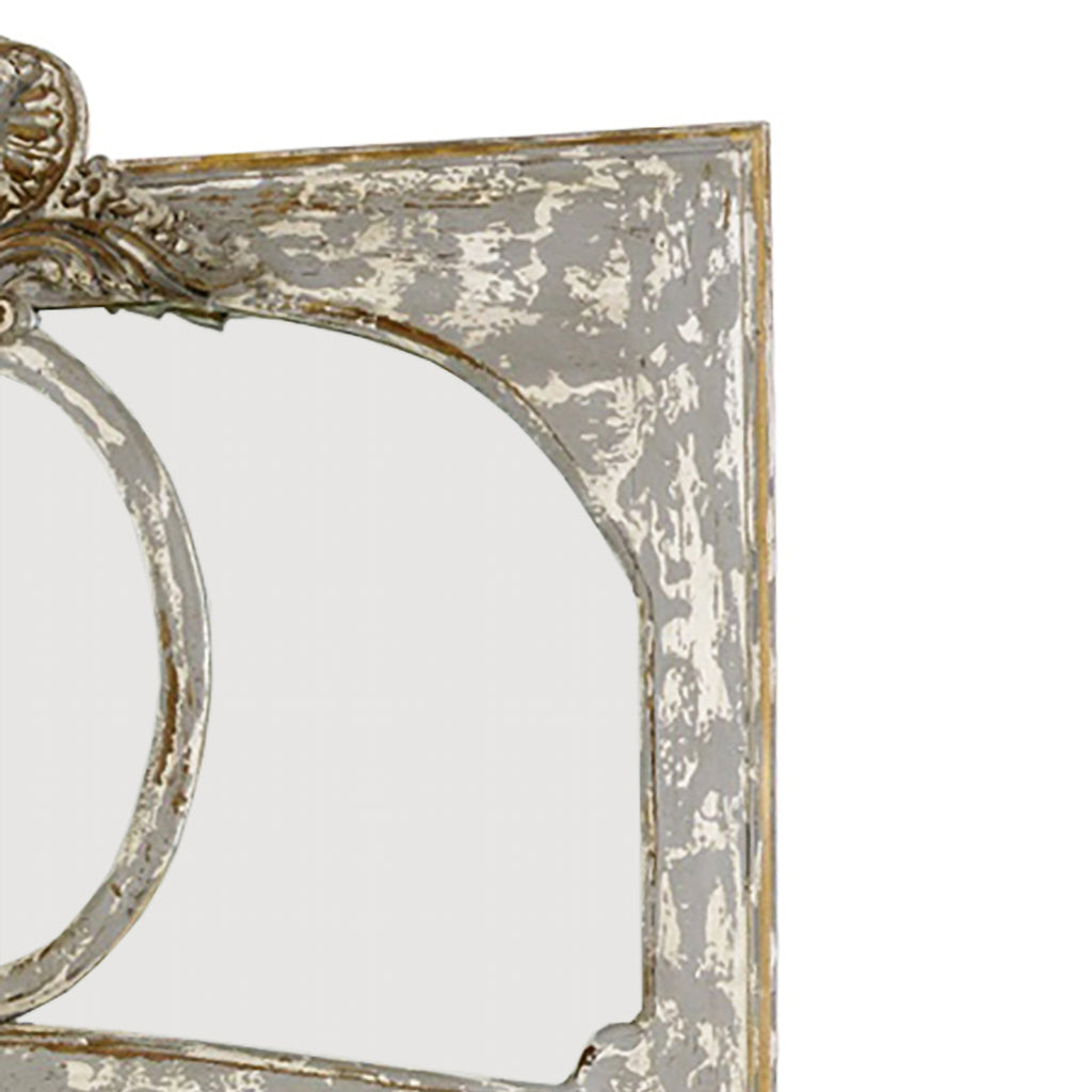 Handmade and hand painted reclaimed wood frame mirror. Has a distressed dark gray with off white distressing.