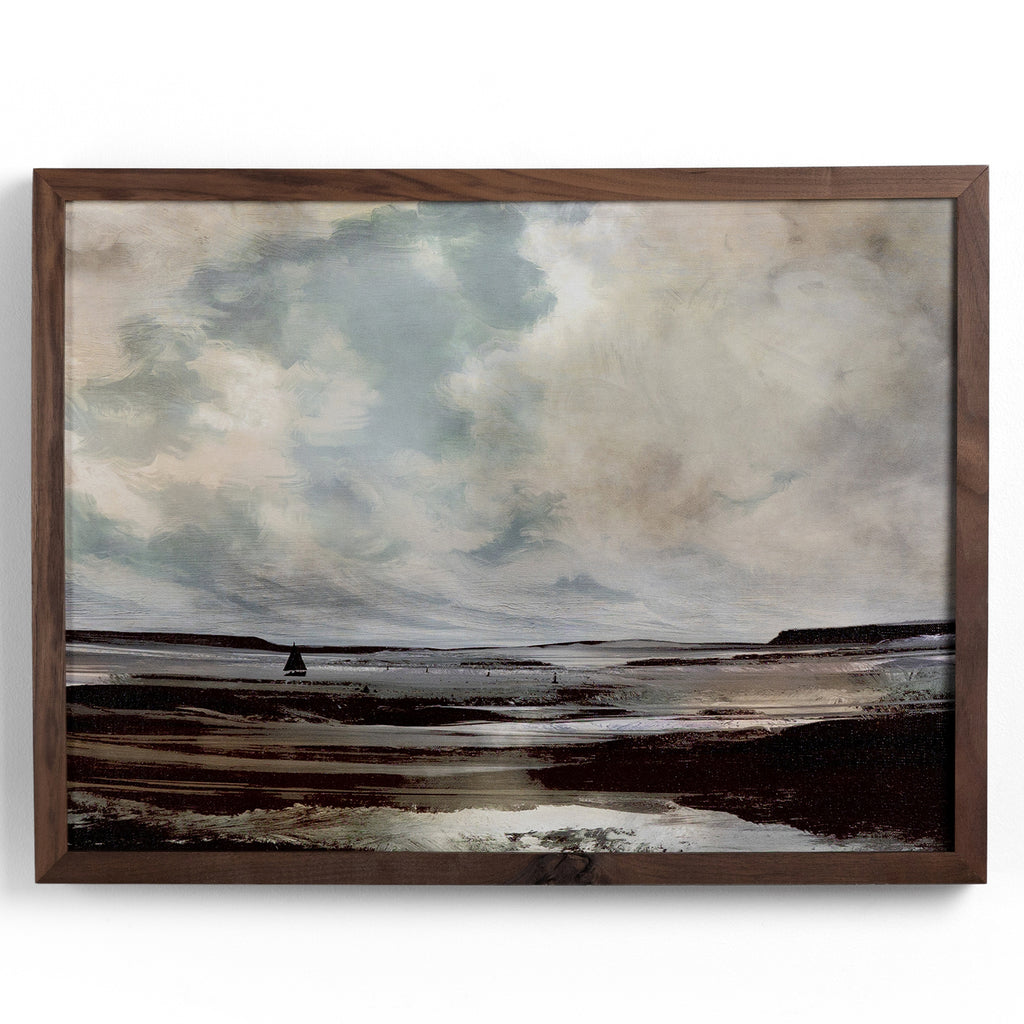 Artist Dan Hobday finds inspiration in the coastal landscapes of his hometown of Devon, England. This original piece is printed on matte white canvas and framed within rustic-finished walnut for a gallery-quality look. If not currently in stock, this texture-enhanced piece ships within three weeks. Handmade in Austin, Texas.