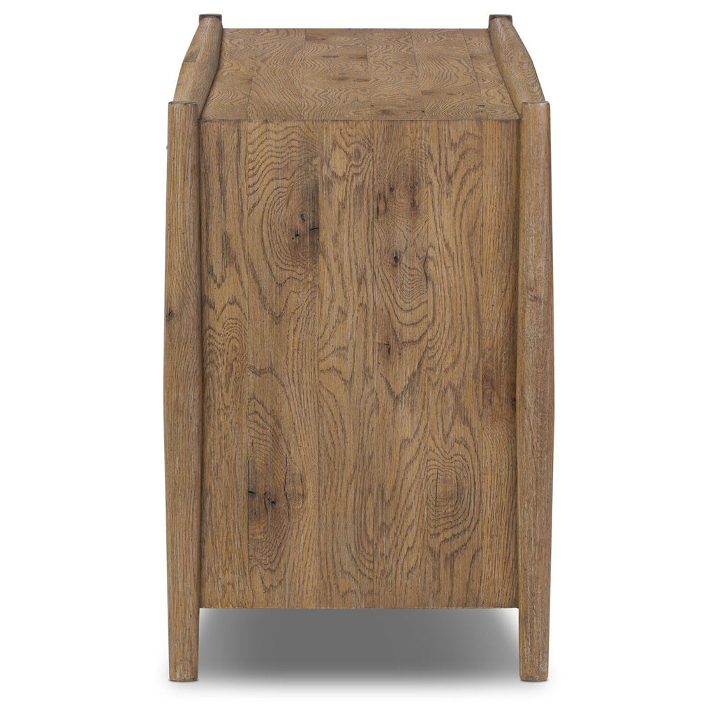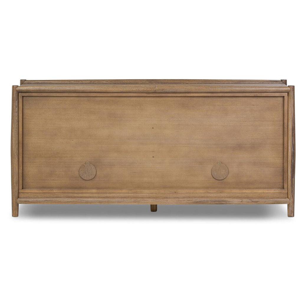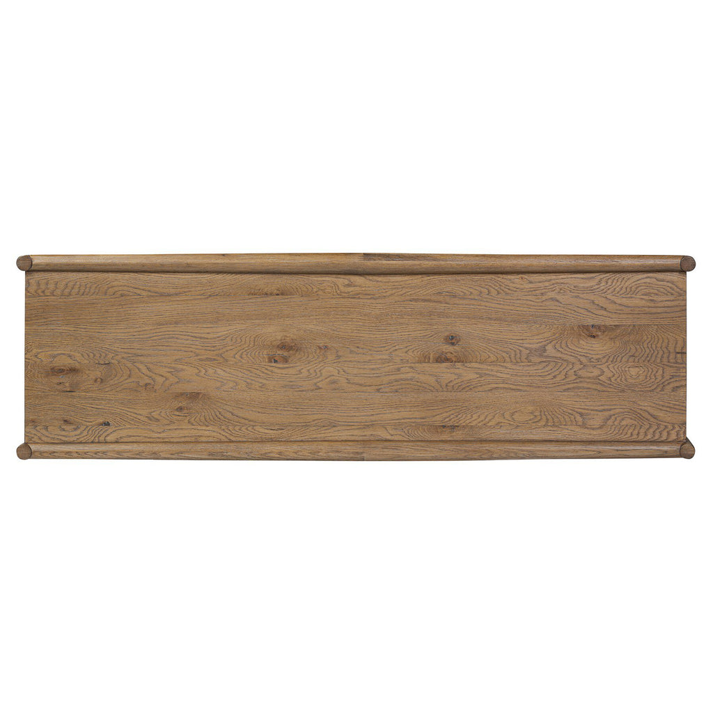 The traditional spindle structure brought to modern speed. Made from weathered oak, the sideboard brings generous storage space to dining and entertaining, working into a range of spaces and collections with ease. Simple cylindrical hardware is finished in an aged bronze.