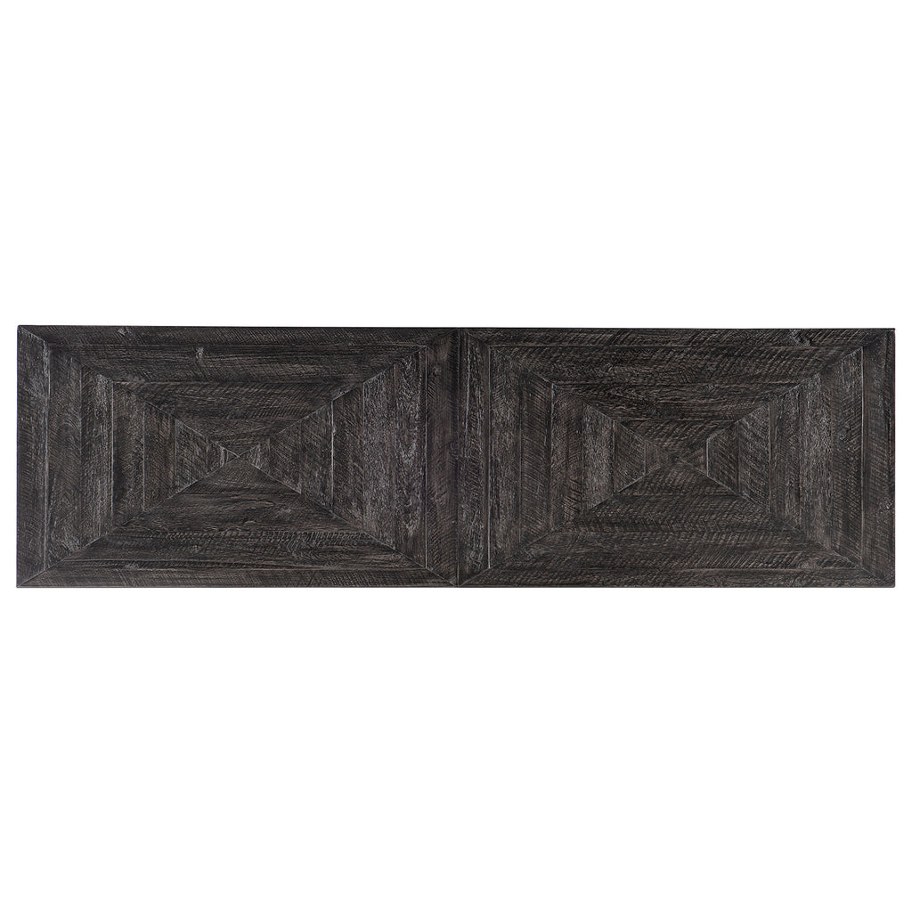 Authentic with an artistic character, the St. Armand Entertainment Console is crafted of Acacia Solid Wood with metal trim. Featuring 4 doors with soft-close hinges and one adjustable shelf behind each pair of doors, the console has a ventilated back panel, power supply and accommodates up to a 60-inch TV.