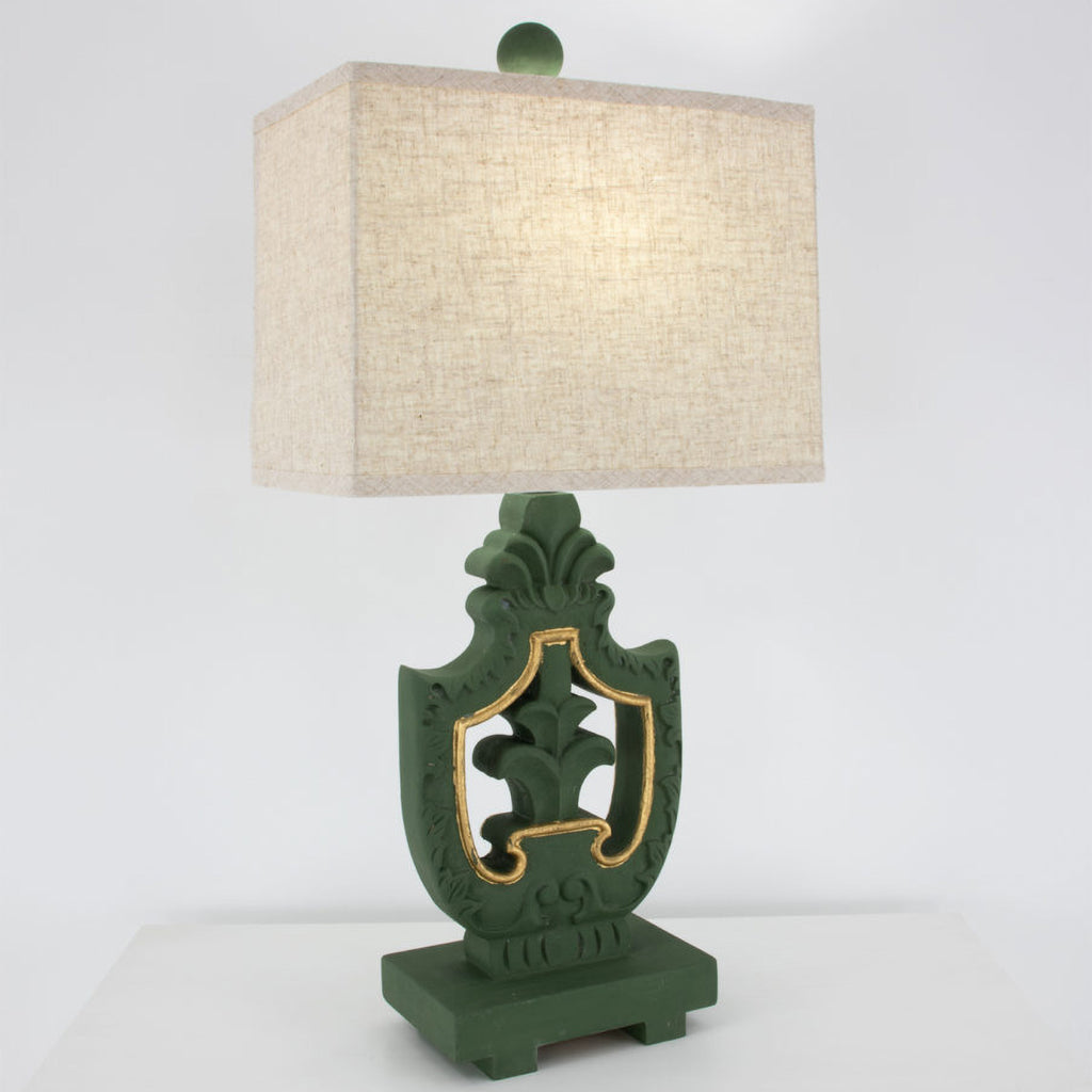 • Finish: Soft Cream Taupe, Antiqued Brown or Emerald Green with gold leaf