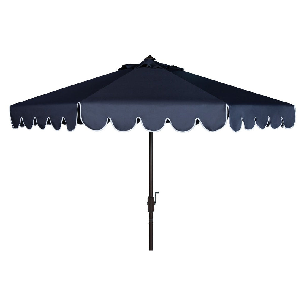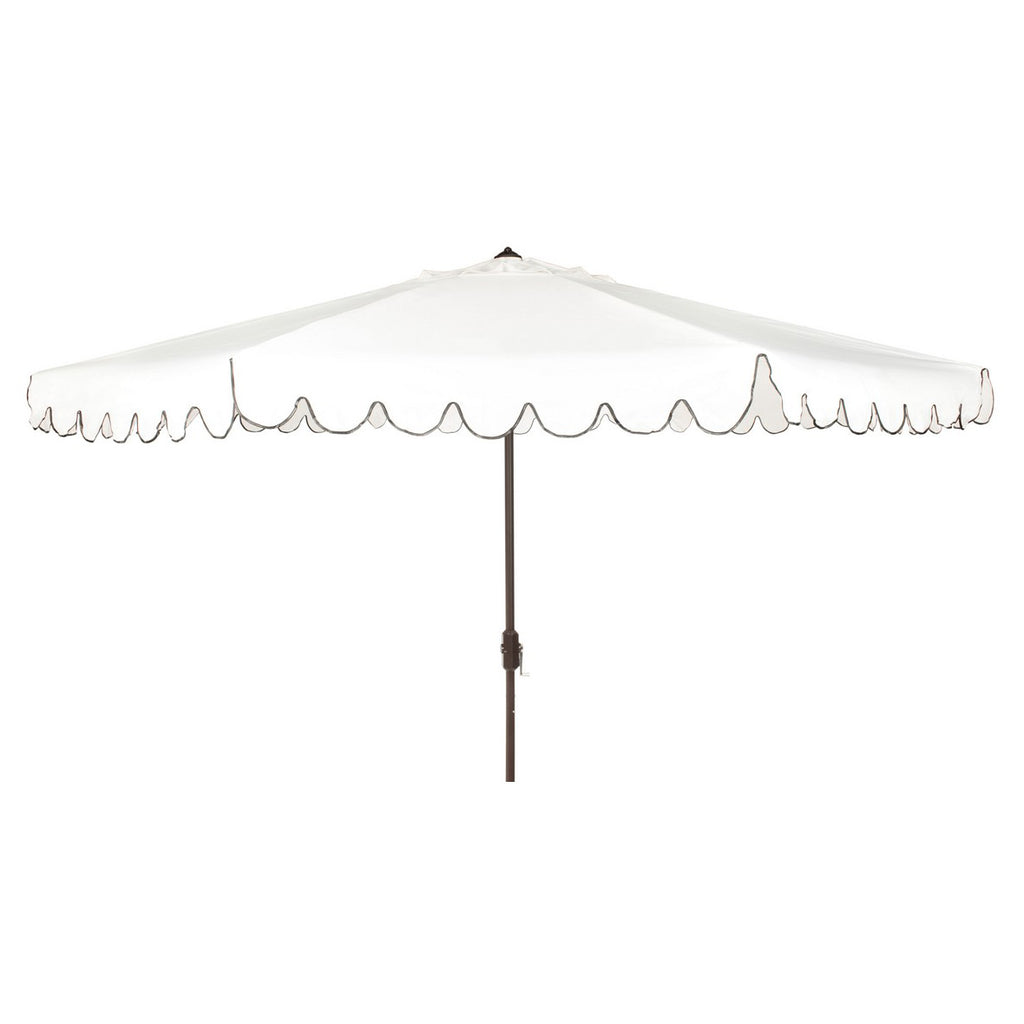 The signature backdrop of Santorini’s lush legendary resort inspired this eleven-foot crank umbrella. Its chic white hue features a matching scalloped trim to create an outdoor retreat for the modern tastemaker.
