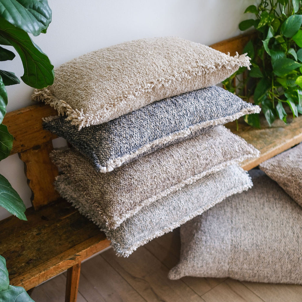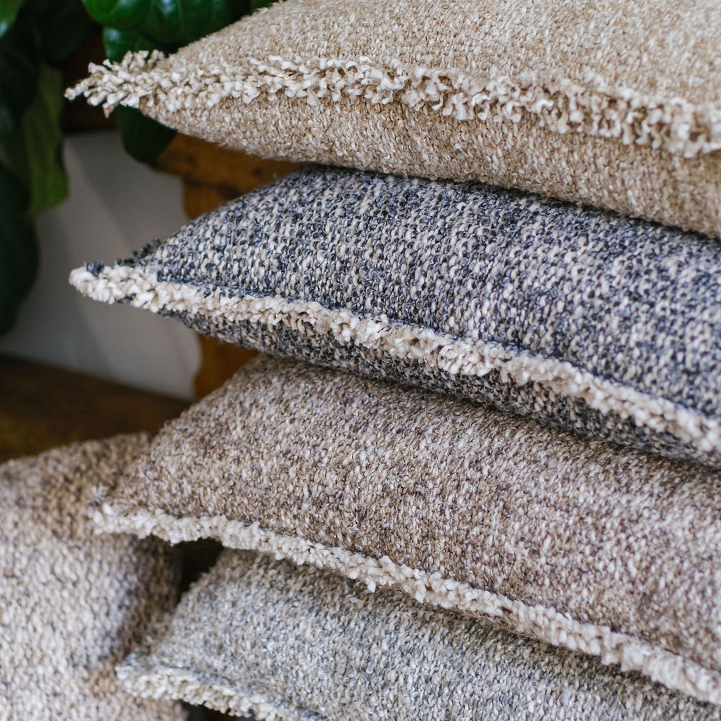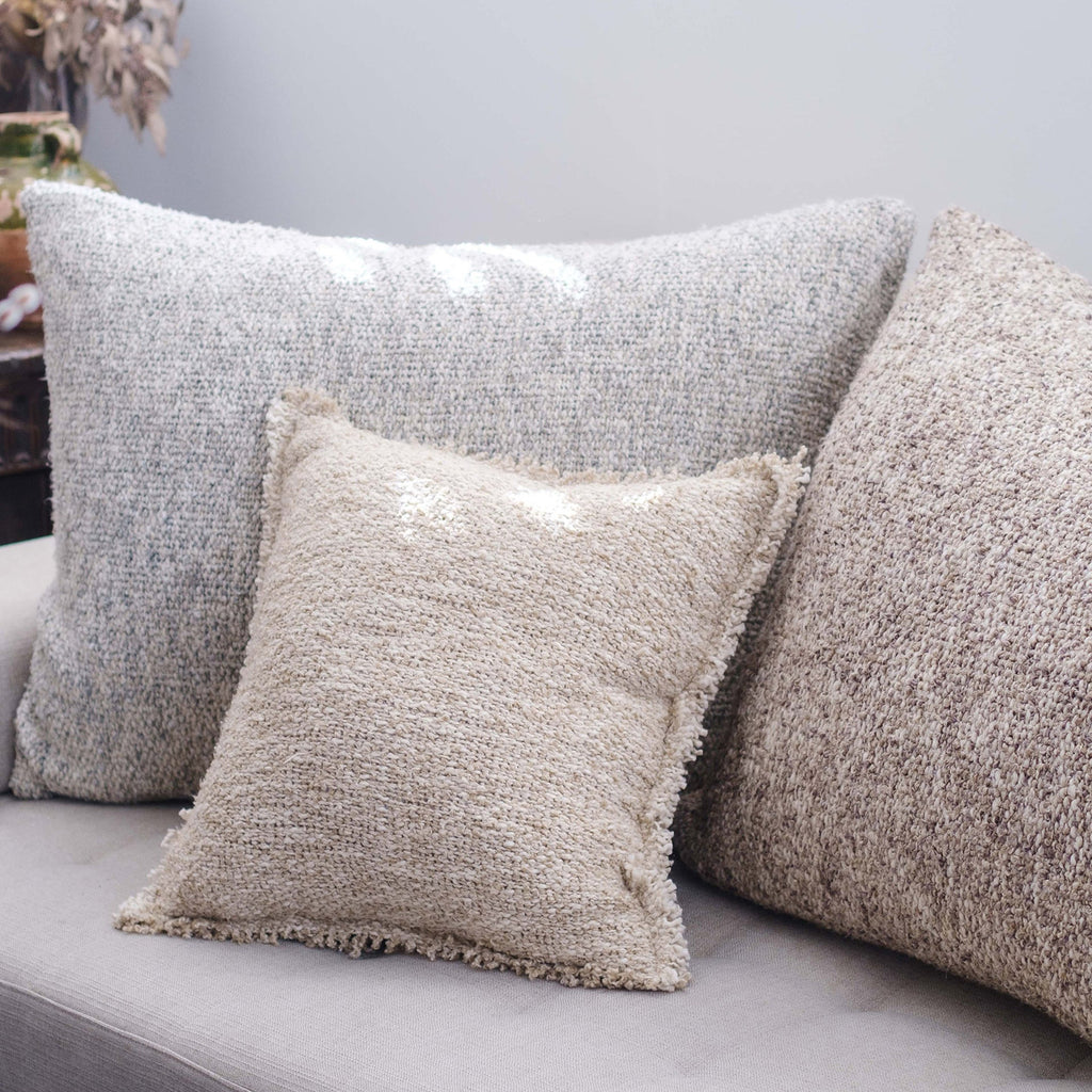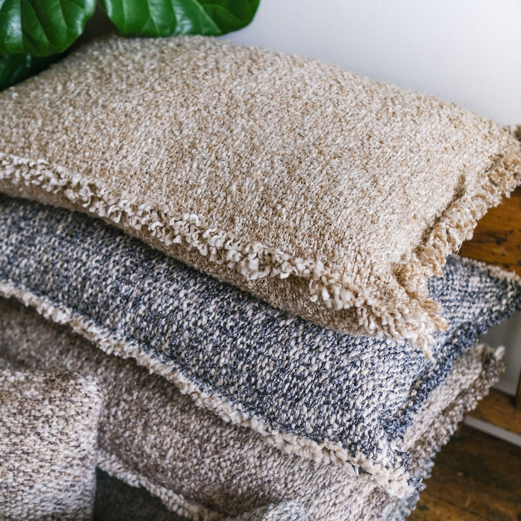 Whether you are curling up on the couch or adding texture to your bed, the Pom Pom at Home Brentwood Throw Pillow is the perfect cozy addition. It is handloomed with contrasting yarns to create a heathered look and a chunky bouclé texture.