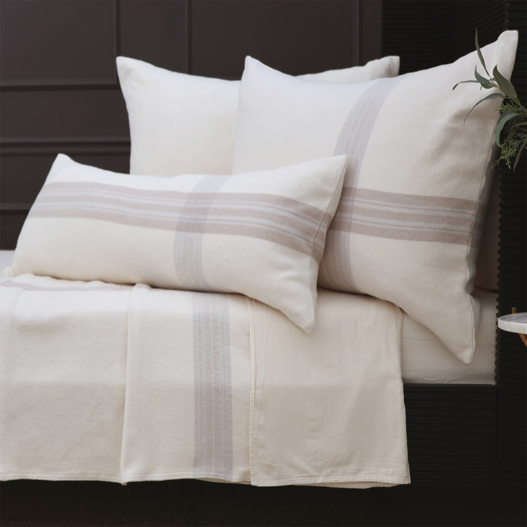 The Pom Pom at Home Geneva features a broad plaid pattern in muted tones on super soft combed cotton. Its inviting softness and natural coziness make it a great choice to snuggle into.