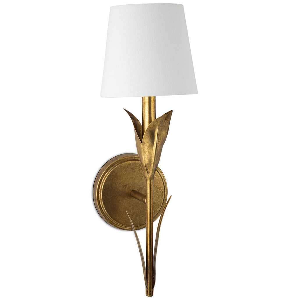 With a botanical influence and a beautiful finish, the River Reed Sconce is the ideal fixture for any traditional space. A reeded arm reaches upwards toward a delicate natural linen shade. The single sconce sits elegantly on a round plate.
