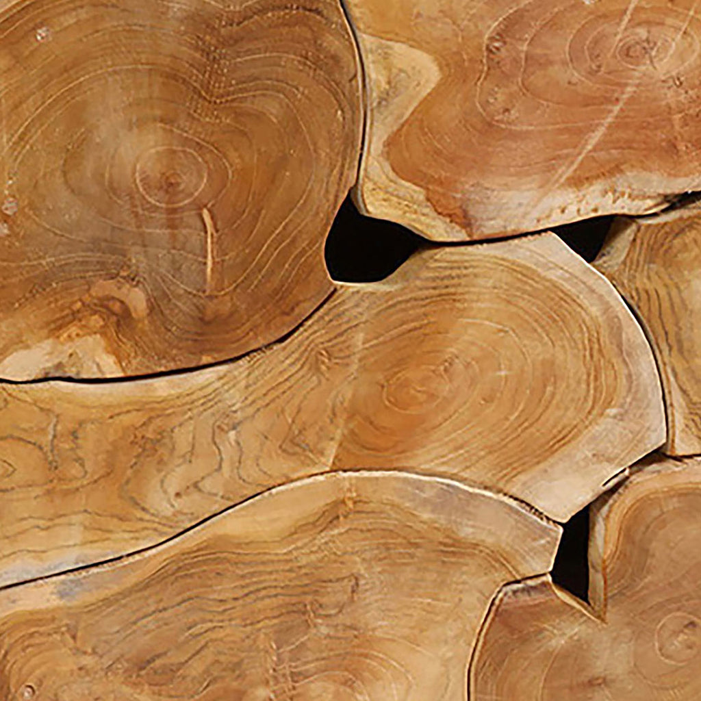 Pieced together from reclaimed slabs and chunks of solid teak wood finished in a bleached finish or natural with exquisite craftsmanship. Artisans build each bench like a puzzle, fitting each piece together in combinations that are never duplicated. Like true works of art, no two will be exactly alike. Each bench is perfectly sized to complement any space. Place it on your entryway or at the foot of your bed.