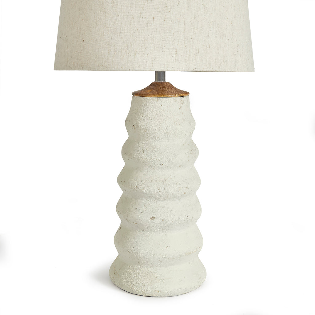 Made of a composite, natural ecomix, the Adria Lamp base is composed of hardening agents for longevity. The finish is warm white with a pitted texture that shows the softness of the material. With a tapered shade, and neutral tone, works well in every environment.