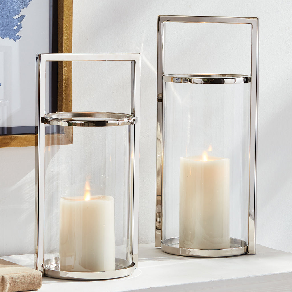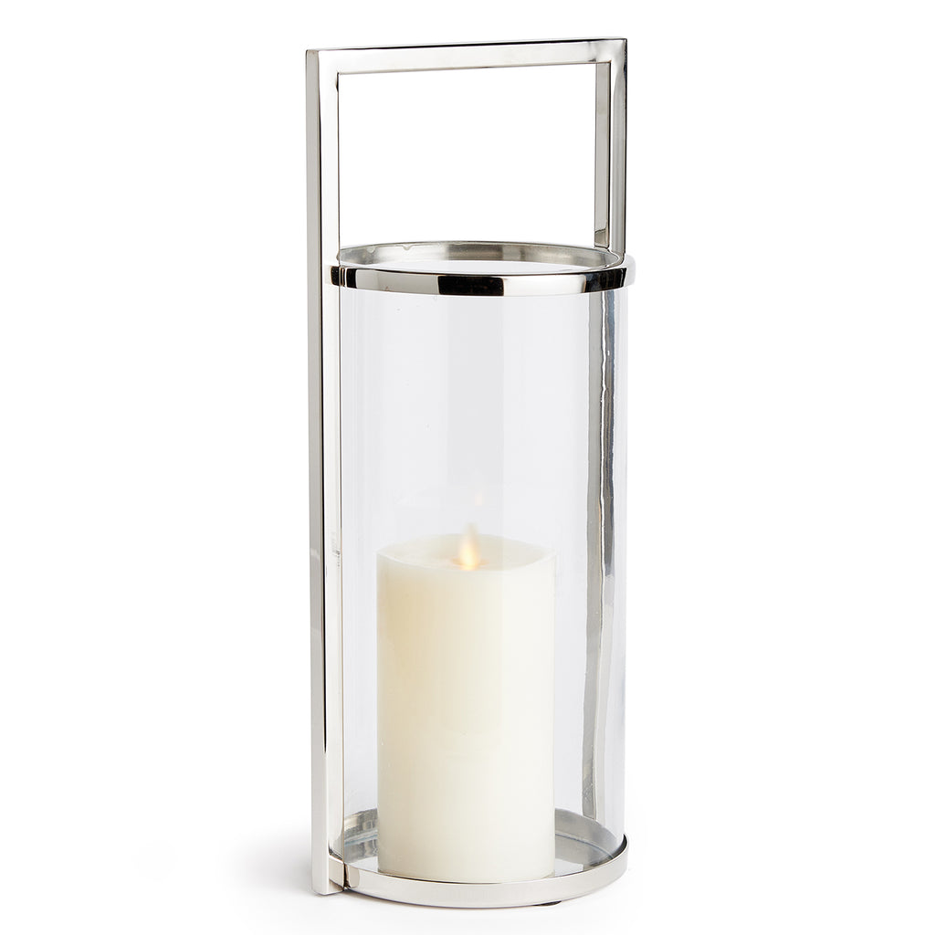 With a modern silhouette made of polished stainless steel, this tailored hurricane is at home in any setting. The square handle makes it easier to move around.