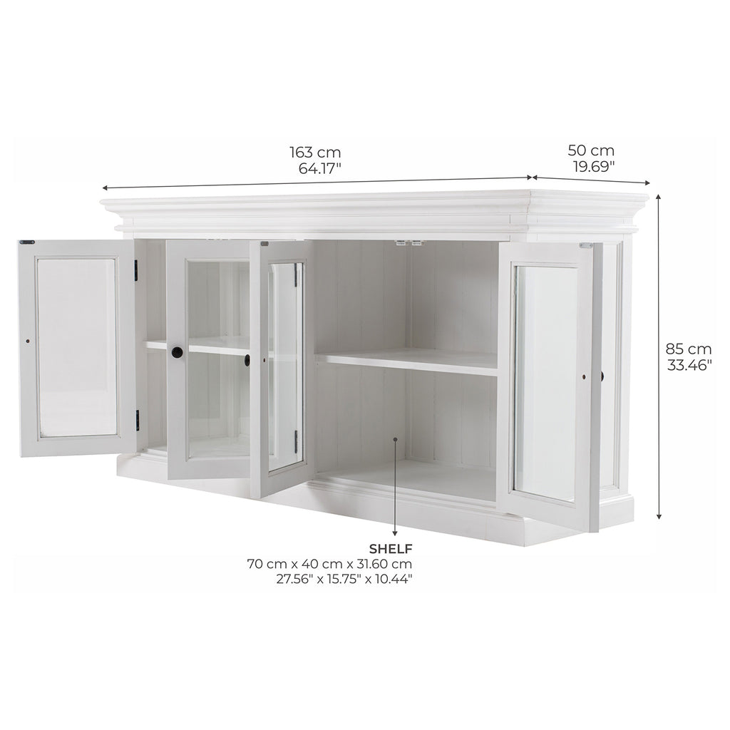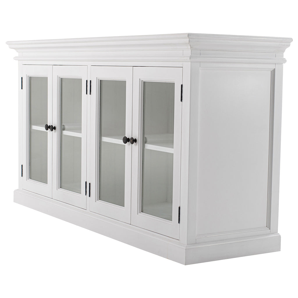 Beckton combines the quaint charm of the French Countryside with the coastal flair of the Eastern Seaboard to form a comprehensive range befitting the dining area, living space or bedroom. Detailed profiling on each piece, together with the warm finishing and antique brass hardware, provides a classic collection for the contemporary home. A buffet is worthy of being called a ‘go anywhere piece’. Upstairs, downstairs. Living room storage piece, hallway display surface. Bathroom floor-standing vanity cabinet, home office filing favorite. This Beckton buffet is essentially a large sideboard with two rows of shelf space in each of its cabinet section and glass doors to turn whatever you fill it with into a showcase.