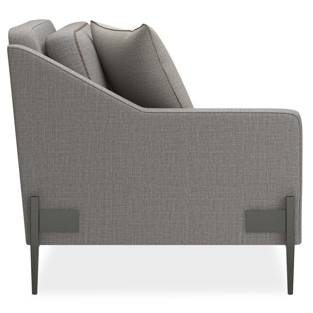 • Finish: 21005-79CC with Back and Seat Cushion; contrast welt U67002, Smoked Stainless