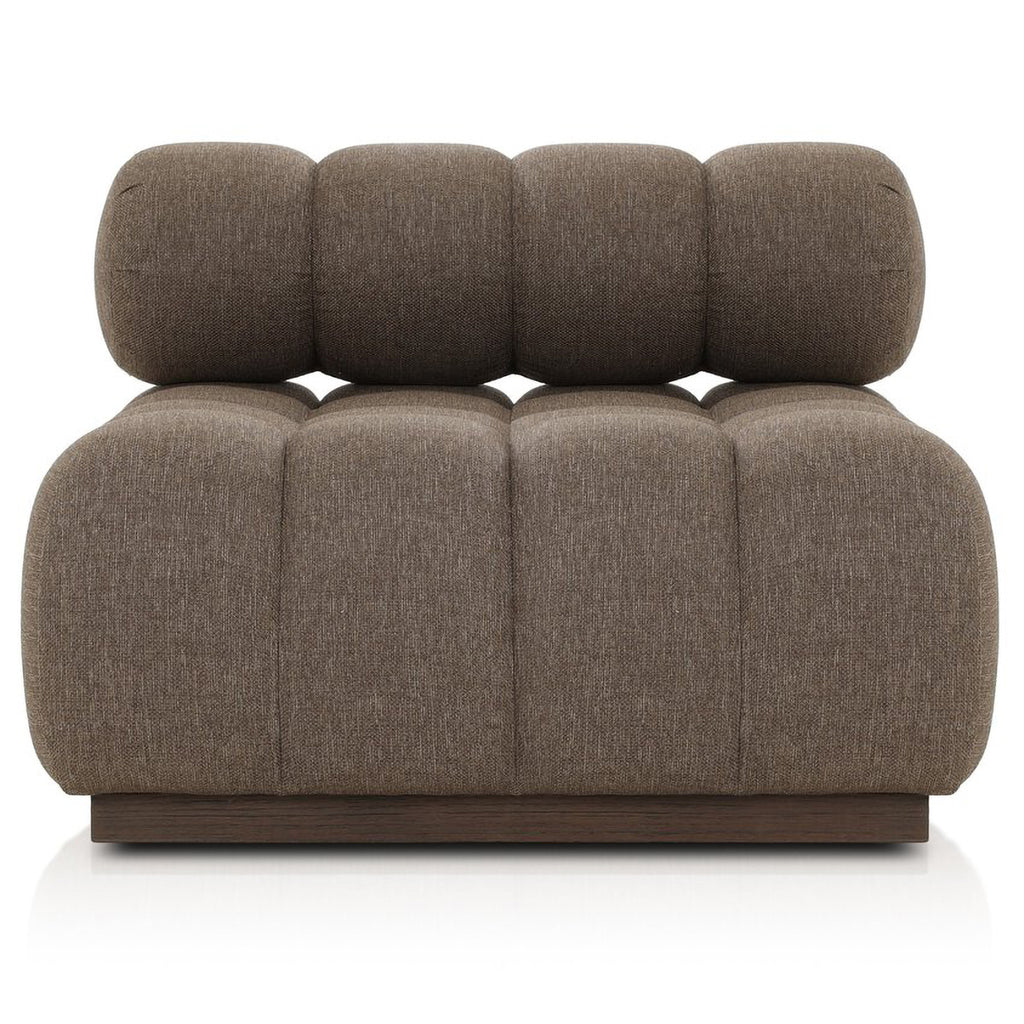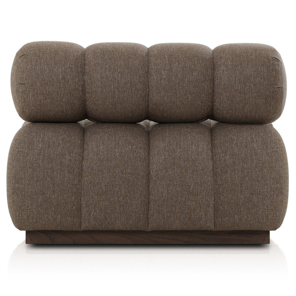 A modern take on midcentury Italian design, soft volume and exaggerated proportions fuse for a sculpted look and playful feel. Atop a plinth-style teak 360-swivel base, outdoor-friendly seating features dramatic tufting for a padded sit, indoors and out. Sustainably made with zero waste, luxurious Italian upholstery places a new and unique spin on indoor/outdoor seating, offering soft, durable fabric that's highly resistant to sun, stains, mold and abrasion. Cover or store indoors during inclement weather and when not in use.
