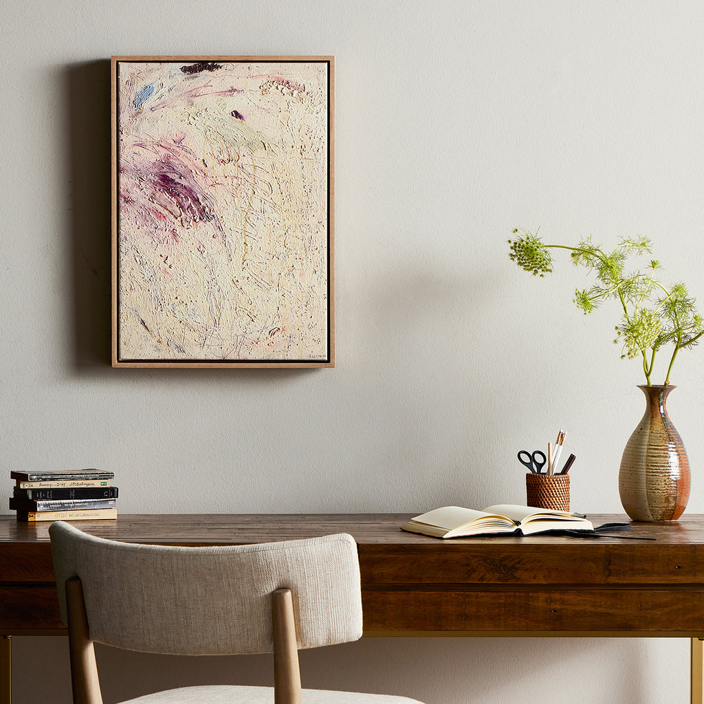 Based in Austin, Texas, abstract-expressionist painter Tyler Guinn looks to texture and organic sensibility to shape his wide variety of works, from geometric pieces and flowing landscapes to mark making and automatic writing. If not currently in stock, this texture-enhanced piece ships within three weeks. Handmade in Austin, Texas.