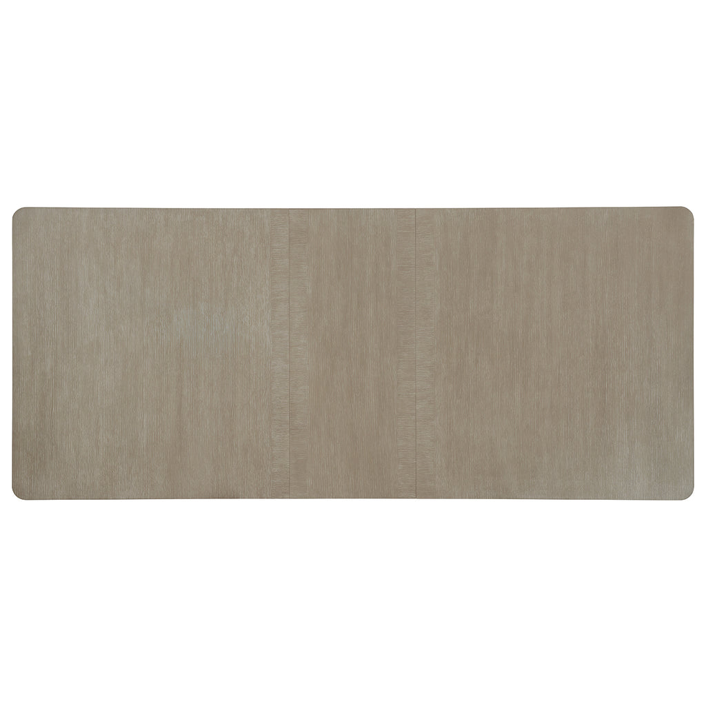 A neutral color palette and angular forms create a soft modern expression in the Affinity Rectangle Pedestal Dining Table. Crafted of Quartered Oak Veneers, the table has a tactile greige sand-blasted finish. With two 18-inch leaves, the table extends to 114 inches with both leaves in place and will accommodate 6 guests without leaves, 8 guests with one leaf and 10 guests with both leaves. A three-piece geared wood table slide allows you to add or remove leaves.