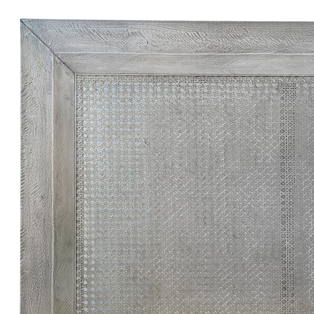 This low-profile platform bed has those must-have rattan details that create a breezy vacation oasis in your bedroom or guestroom. Made from reclaimed acacia wood in a light Gray wash finish that matches the inset rattan details of the headboard. Whether placed in a coastal retreat or a downtown loft, this platform bed offers strong reliable support and cool vibes.