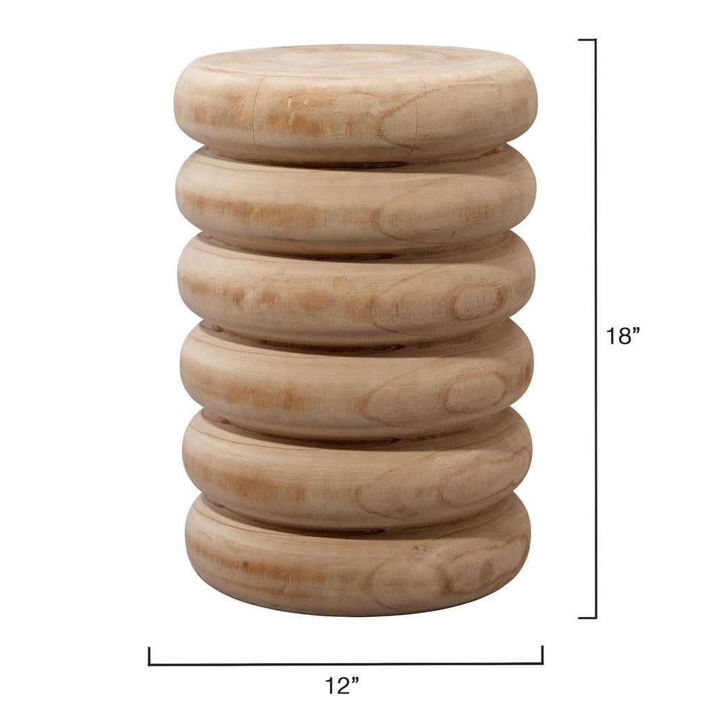 With a simple, clean aesthetic inspired by the seemingly endless desert vistas of the Southwest, this accent table is fashioned from six softly rounded discs of wood. The organic inspiration is honored by a minimal finish that allows the intricacies and natural veining of the wood to shine.