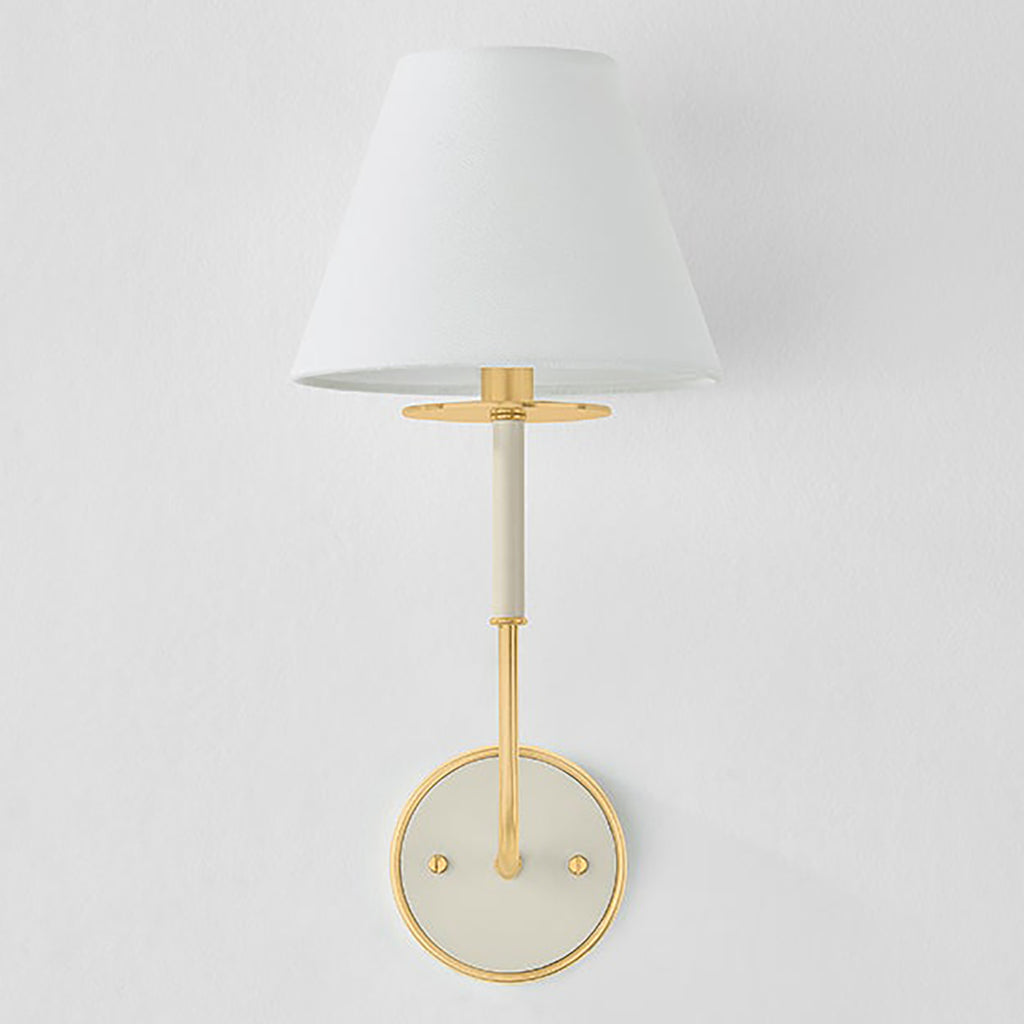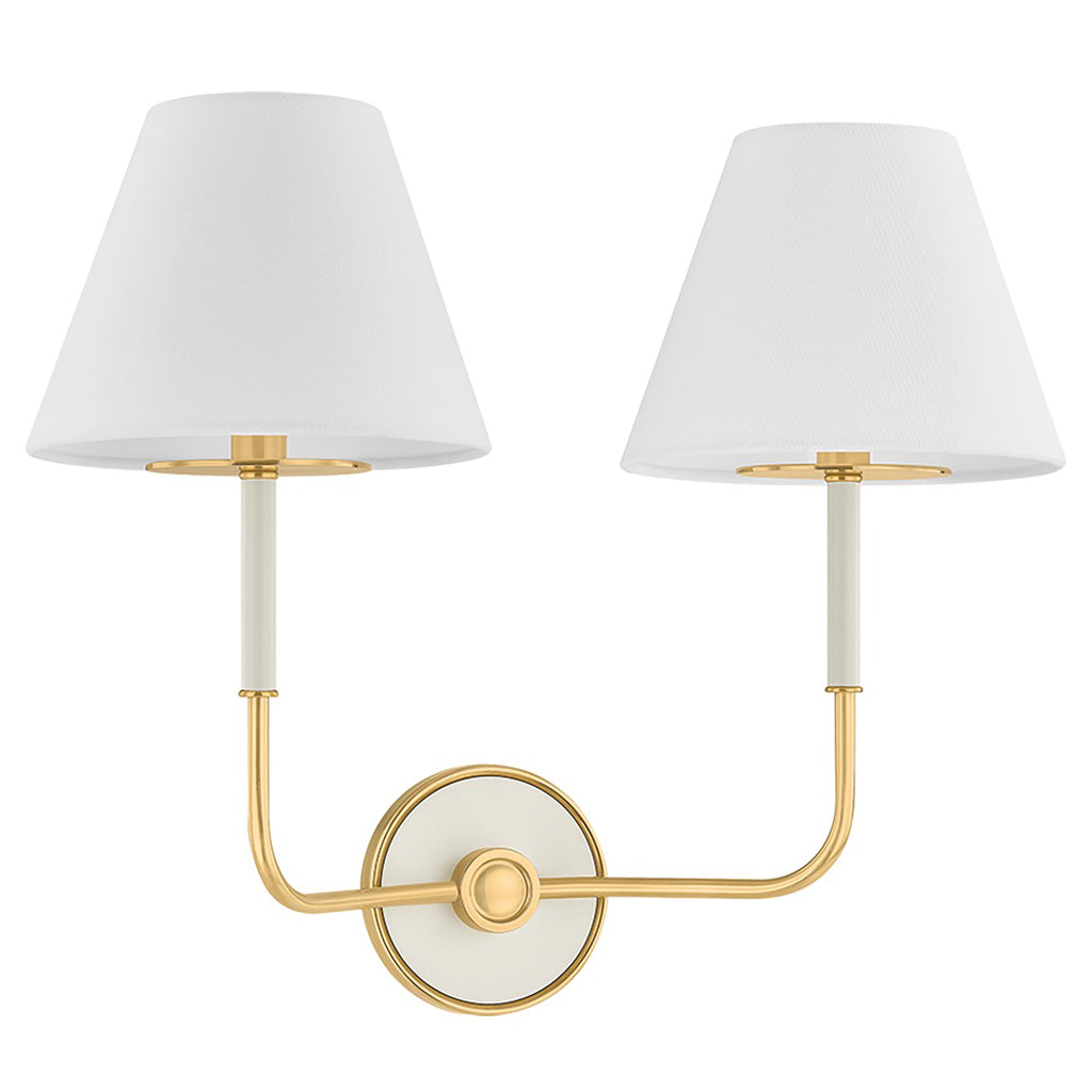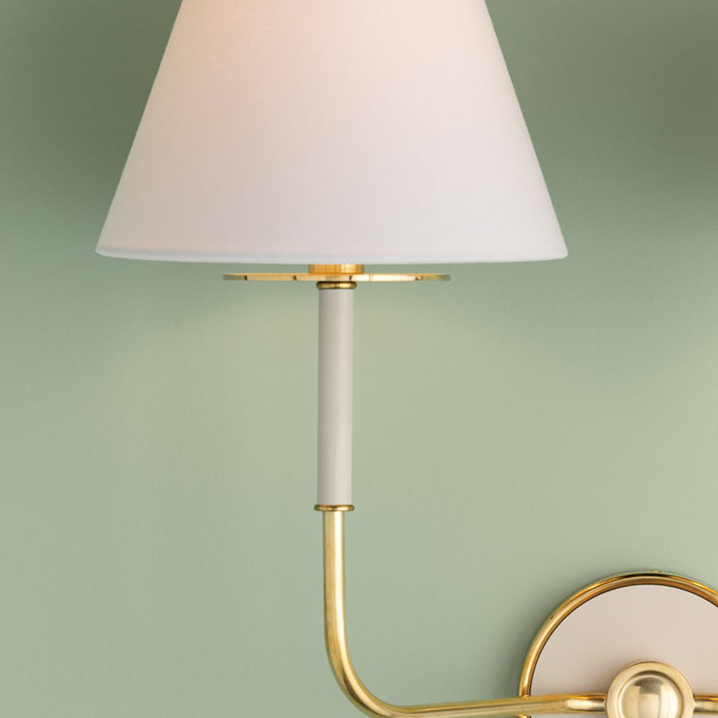 The refined framework and soft, tailored shades of Mark D. Sikes x Hudson Valley Lighting Wedgewood evoke a sense of timeless, European charm. Available with one or two lights, this sconce features a classic shape, mixed finishes, and gently curved metalwork. The Aged Brass frame is further enhanced by the sleeve detail on each arm, which adds a tonal contrast with either an Off White or Soft Studio Green finish.