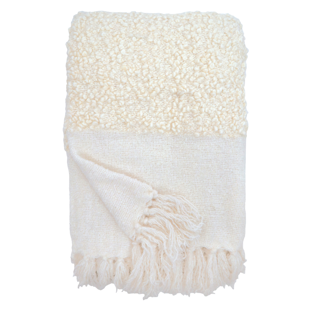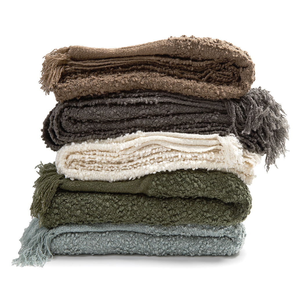 Plush and extra snuggly with a touchable bouclé texture, the Pom Pom at Home Murphy Oversized Throw Blanket has tassels.