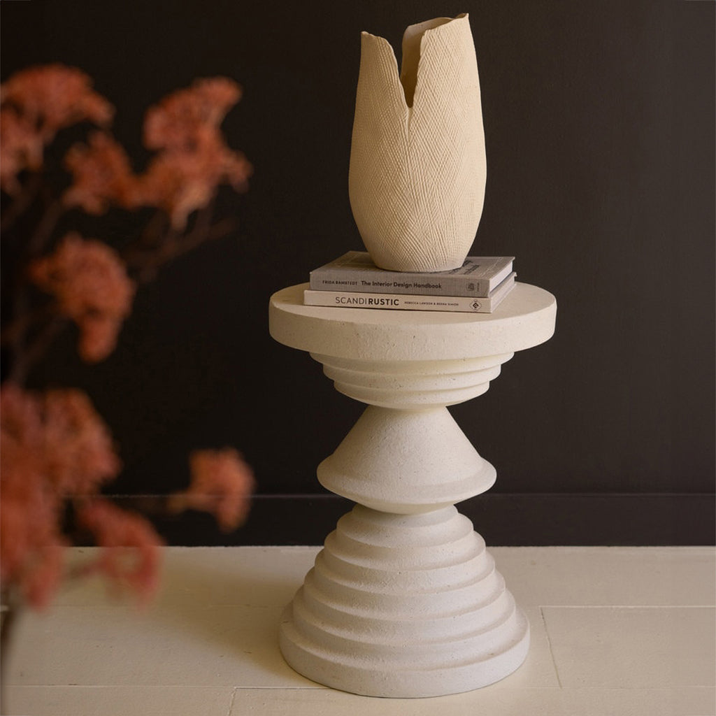 Need an accent table with some character? Try this stone composite round side table. It has multiple turned layers for interest and is neutral enough to go in any corner.