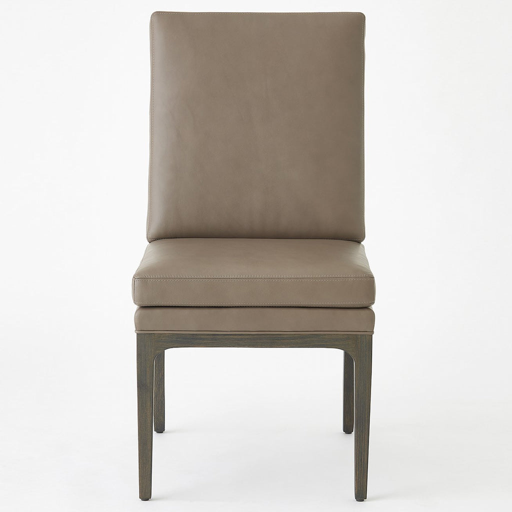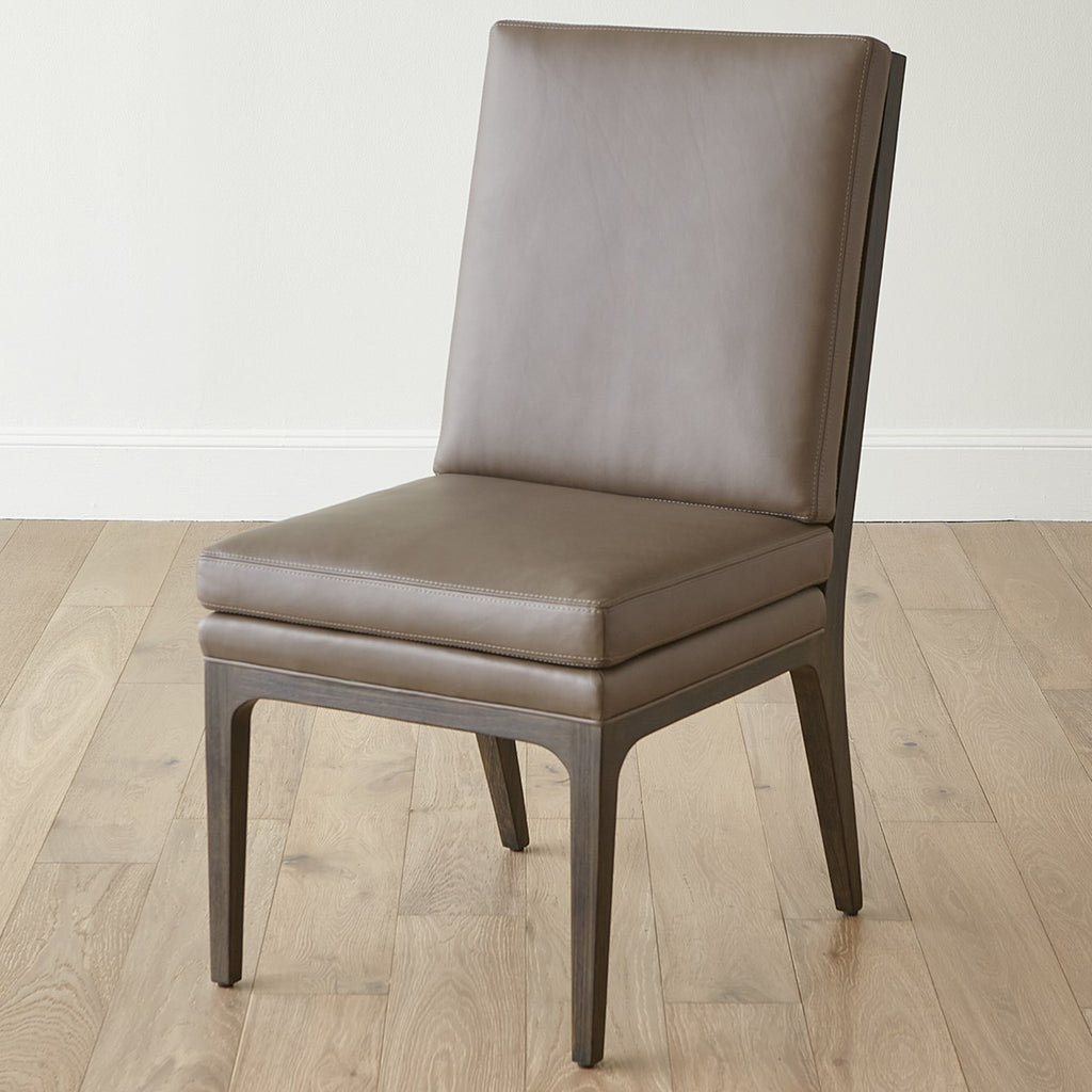 The Abbott Dining Chair features a sleek design crafted from luxurious top-grain leather, paired with a sturdy beechwood frame and a dark grey oak finish. This chair combines comfort and style, making it a perfect addition to any dining space.