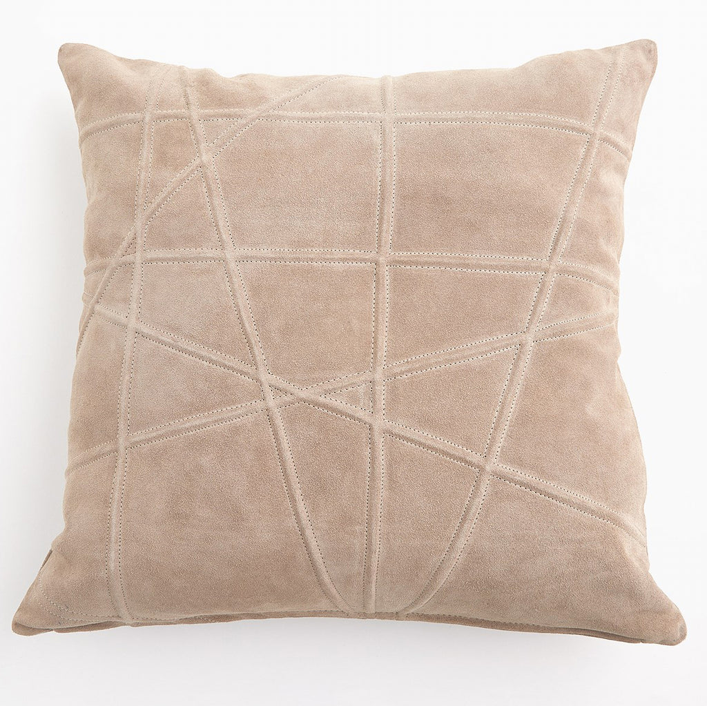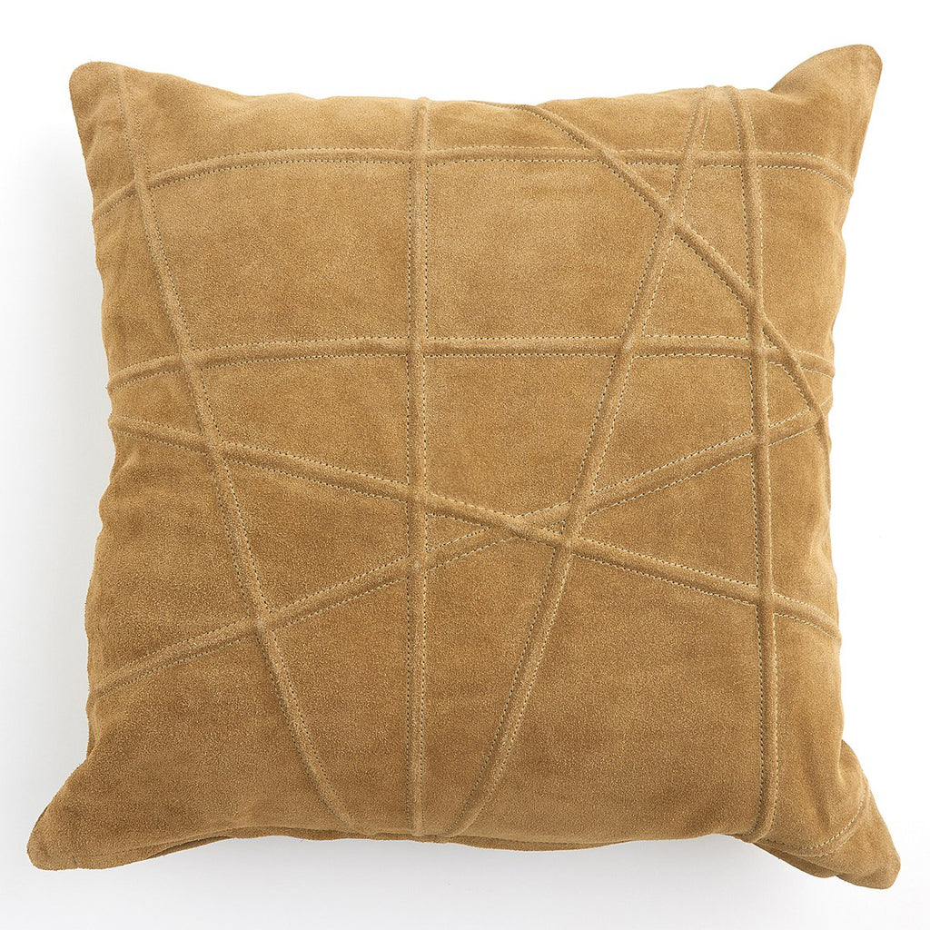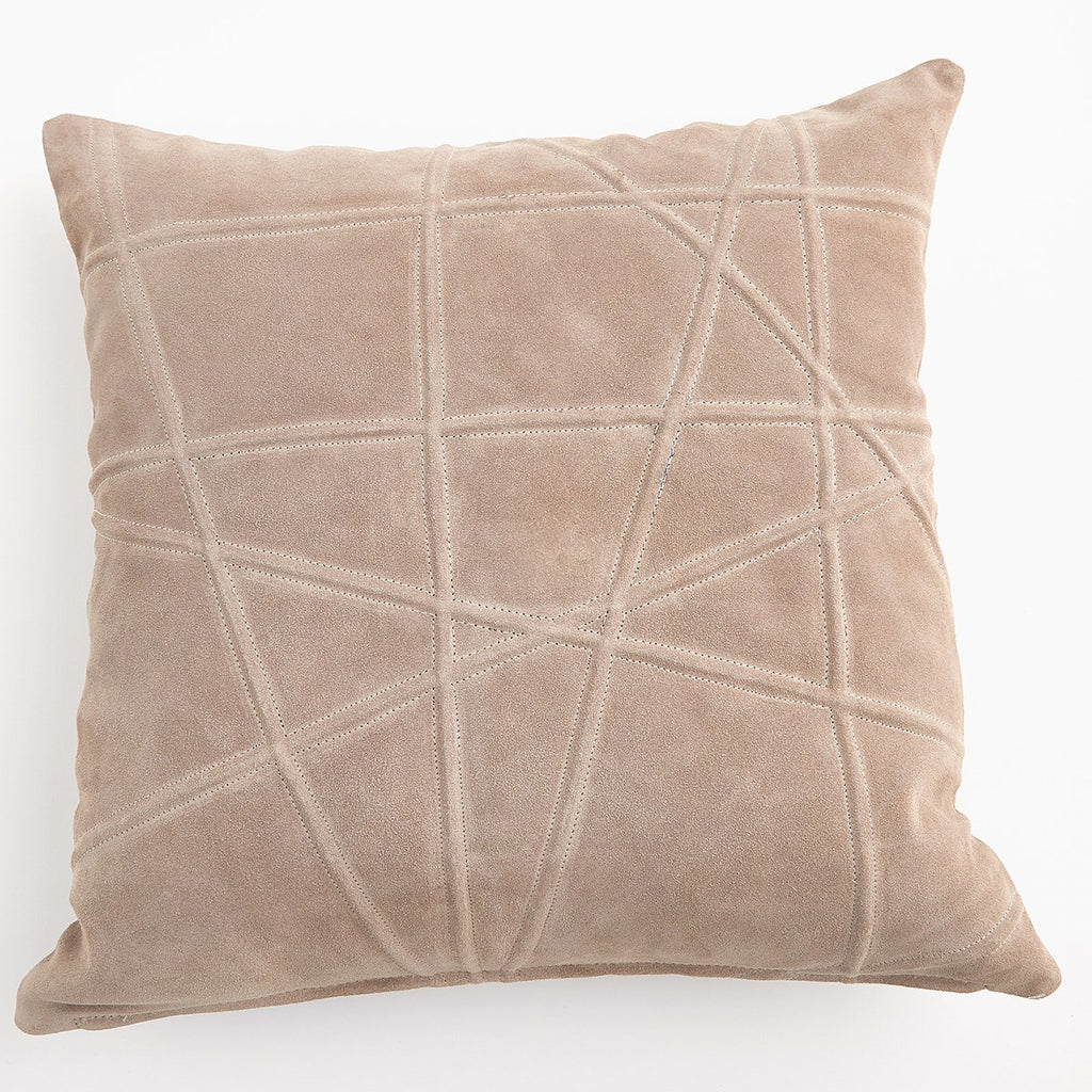 The luxurious Crossroads Pillow is made from 100% suede leather, showcasing a stylish crisscross pattern. It includes a plush down-fill insert for added comfort, making it a perfect accent for any space.