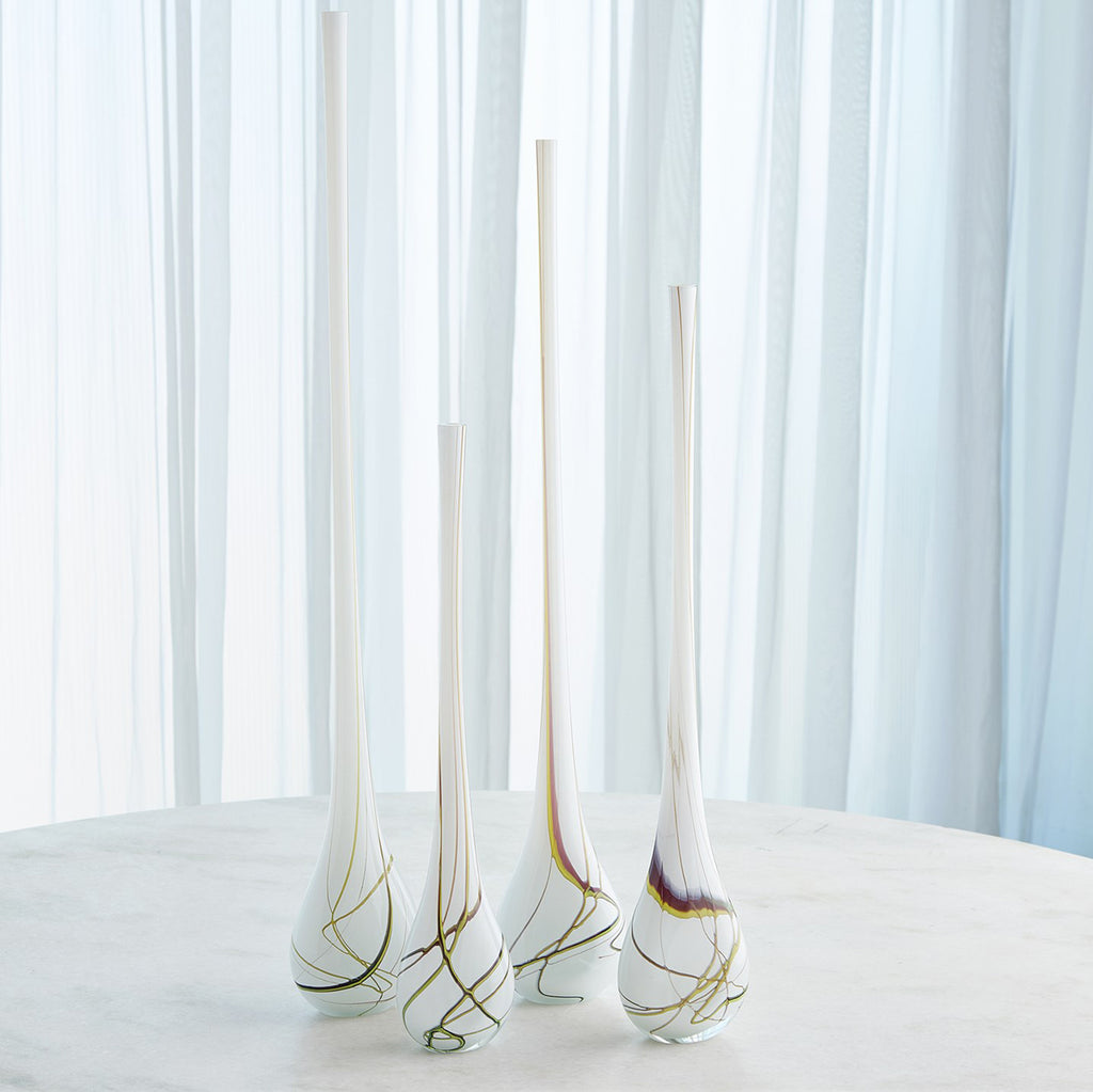 The Pollock Bulb Vases are hand-blown Portuguese art glass featuring a captivating swirl of warm tones, including green, espresso, and aubergine. Each vase is a unique expression of color and craftsmanship, adding a dynamic and artistic touch to any space. Disclaimer: This article is handmade and have variations in weight, size, and color.
