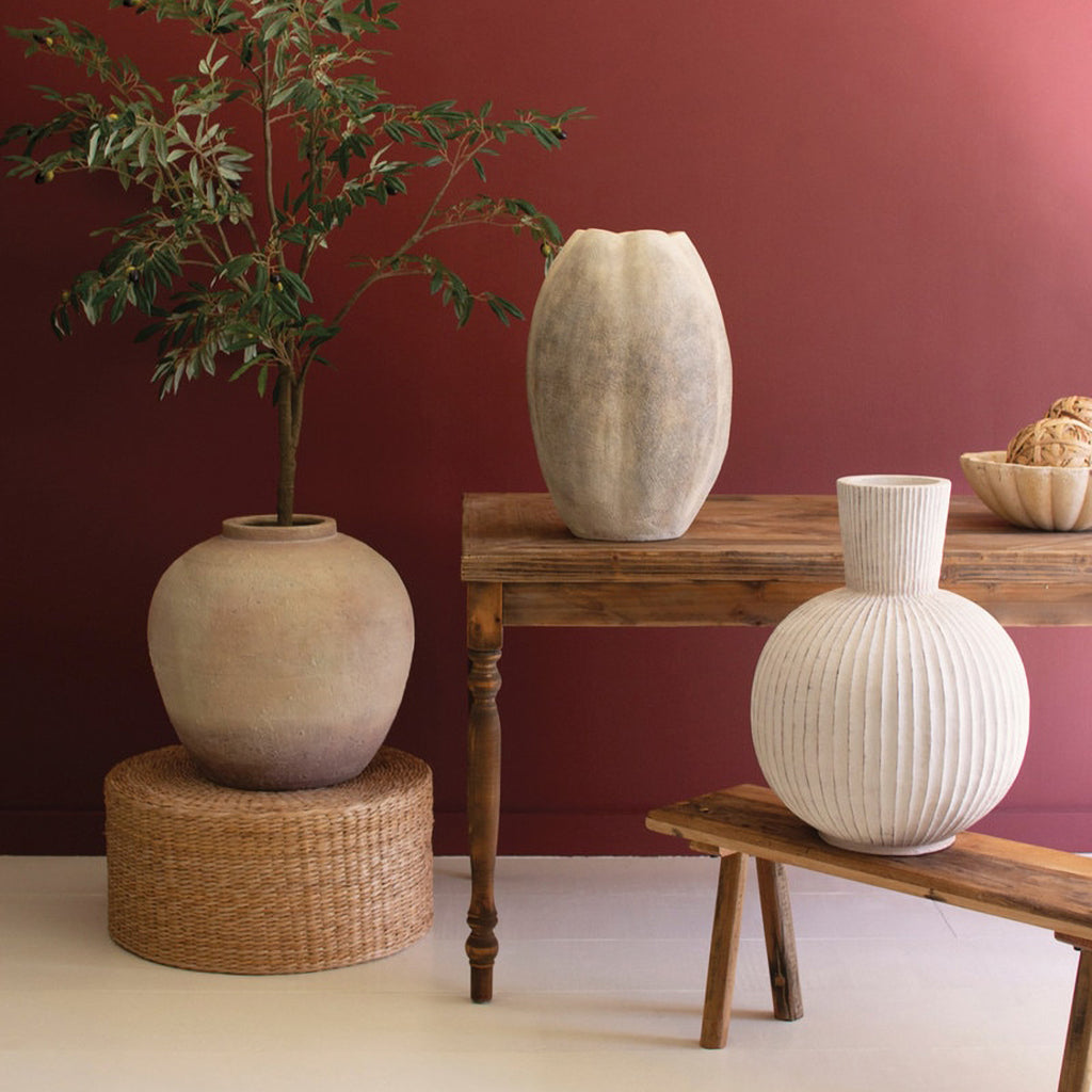 This tall faux ceramic scalloped vase is shaped like a peach. Grab a pair for your porch. It can be filled with fronds or your imagination.