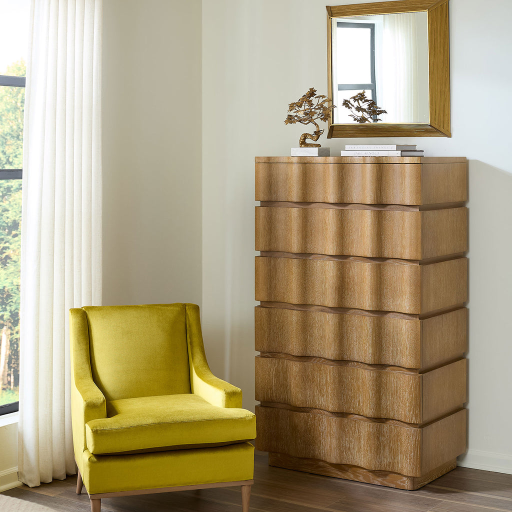 The V&H Vanessa Collection is a stunning addition to our line-up of case goods. The pieces in this collection have been crafted from oak which has been stained a rich brown. The drawer fronts have been shaped like beautiful undulating waves and add a sense of movement to the otherwise very minimal design. With loads of storage, these pieces combine style and functionality, making them a great choice for any home.