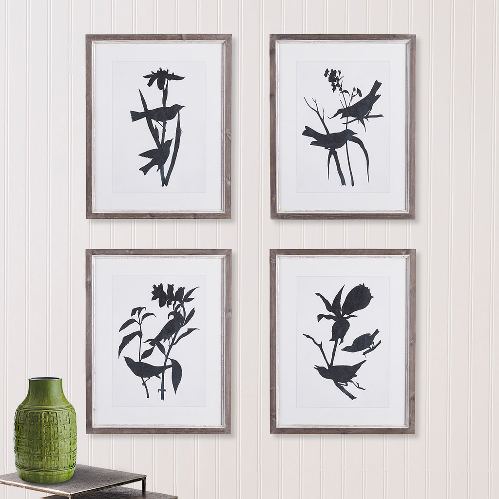 The simplicity of form and composition is executed beautifully in these Bird Silhouette Prints. In a stark contrast of black on white, we see a familiar scene in a whole new light.