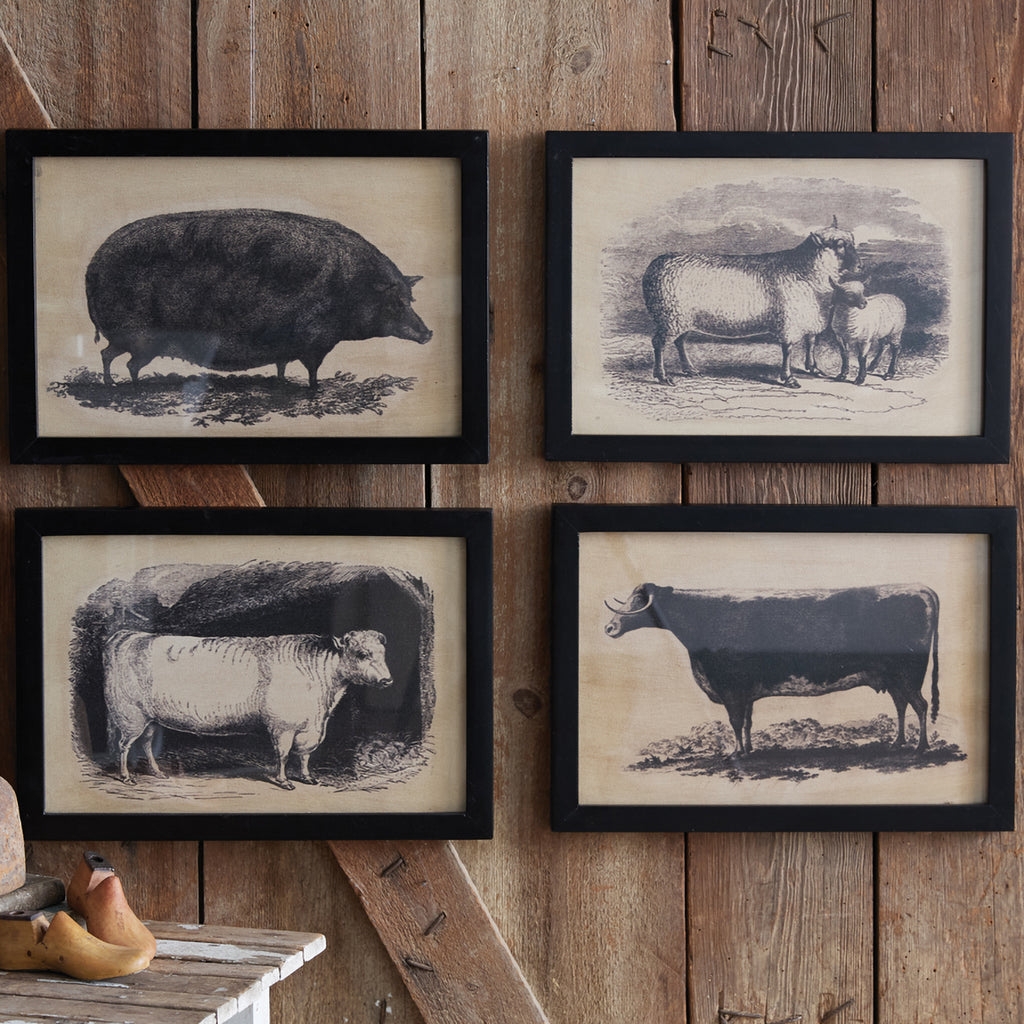 Bring a touch of the farm to your home with the Farmstead Canvas Series. Each is a detailed black and gray print on an antiqued canvas with a glass pane. To hang, use its two sawtooth hangers.