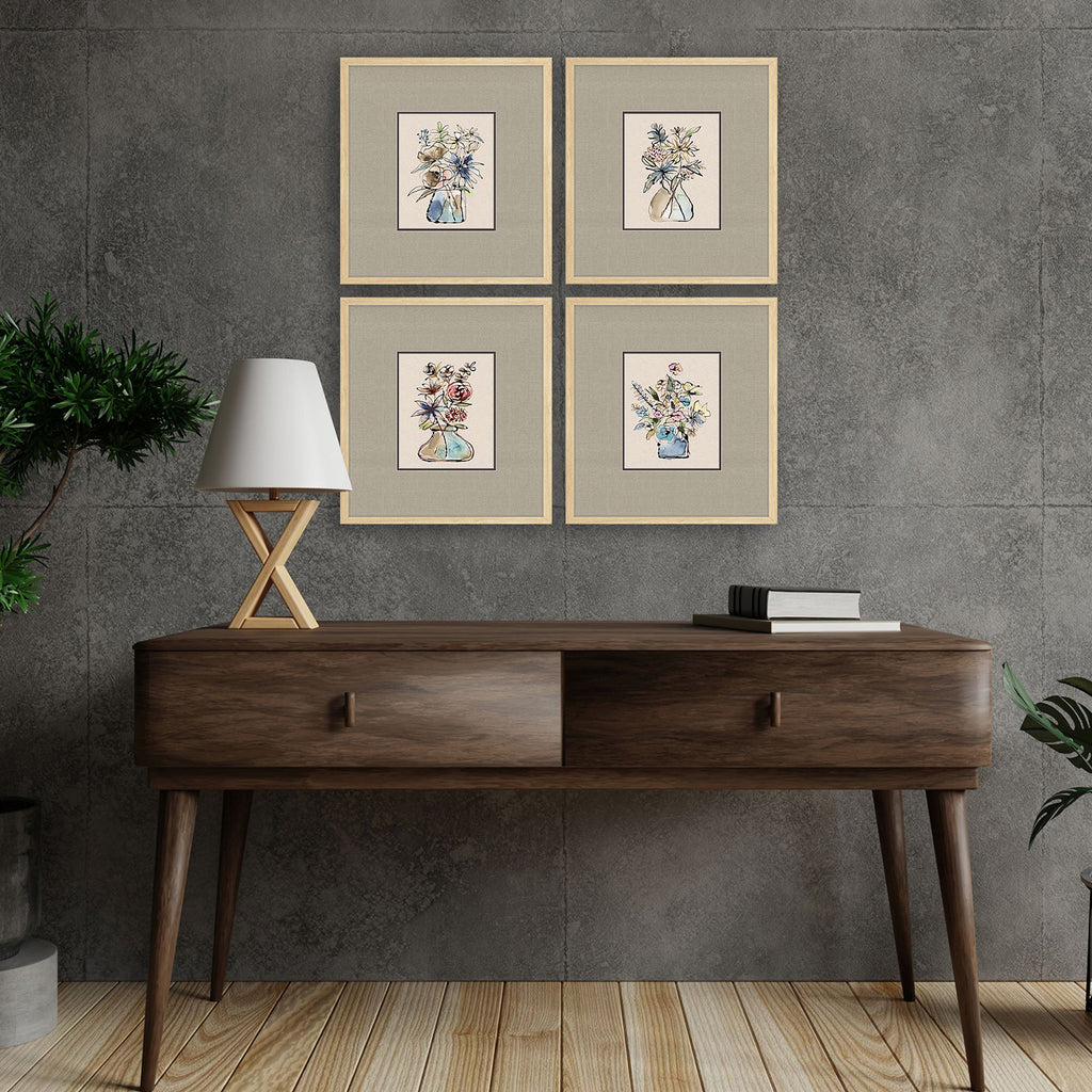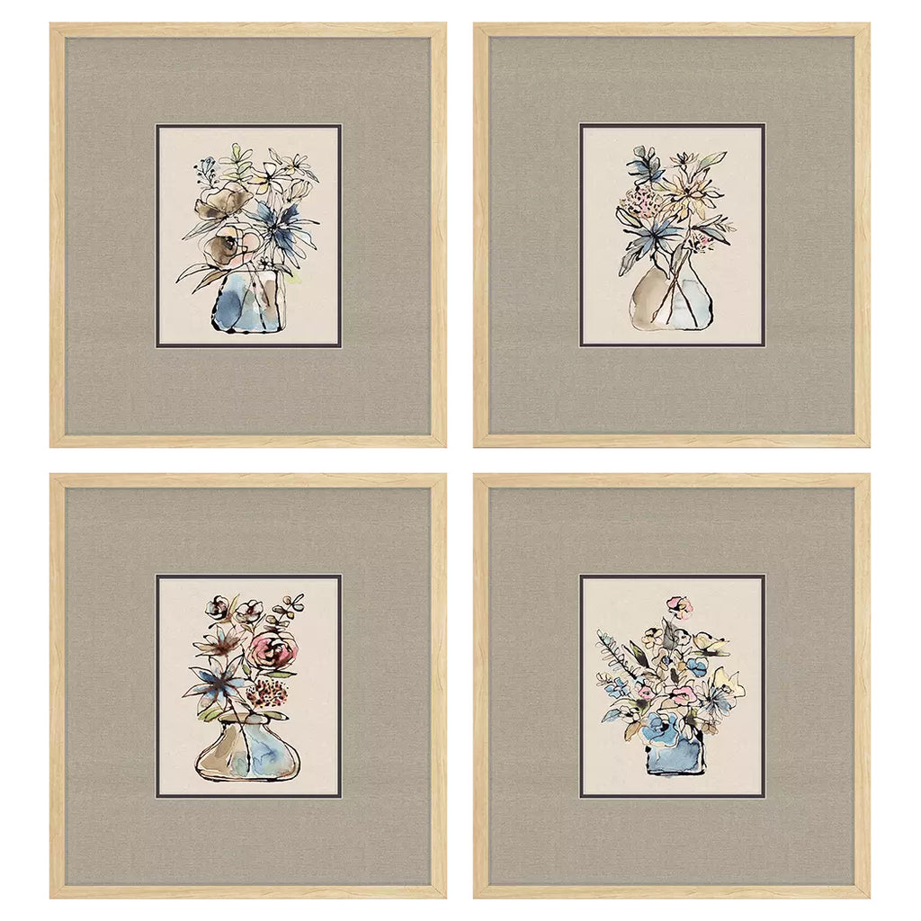 Fresh bouquets with a modern touch feature premium matting. Framed in a natural wood finish moulding.