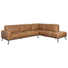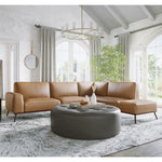 A dazzling Italian-made sofa chaise that magnificently blends modern style with undeniable comfort. With generous seating room, this right hand facing chaise is an impressive addition to any living space. Upholstered in 100% Italian bovine leather for lasting quality. This rich, thoroughly dyed leather features a full grain finish with natural oils and waxes that accentuate the beautiful characteristics of the hide.
