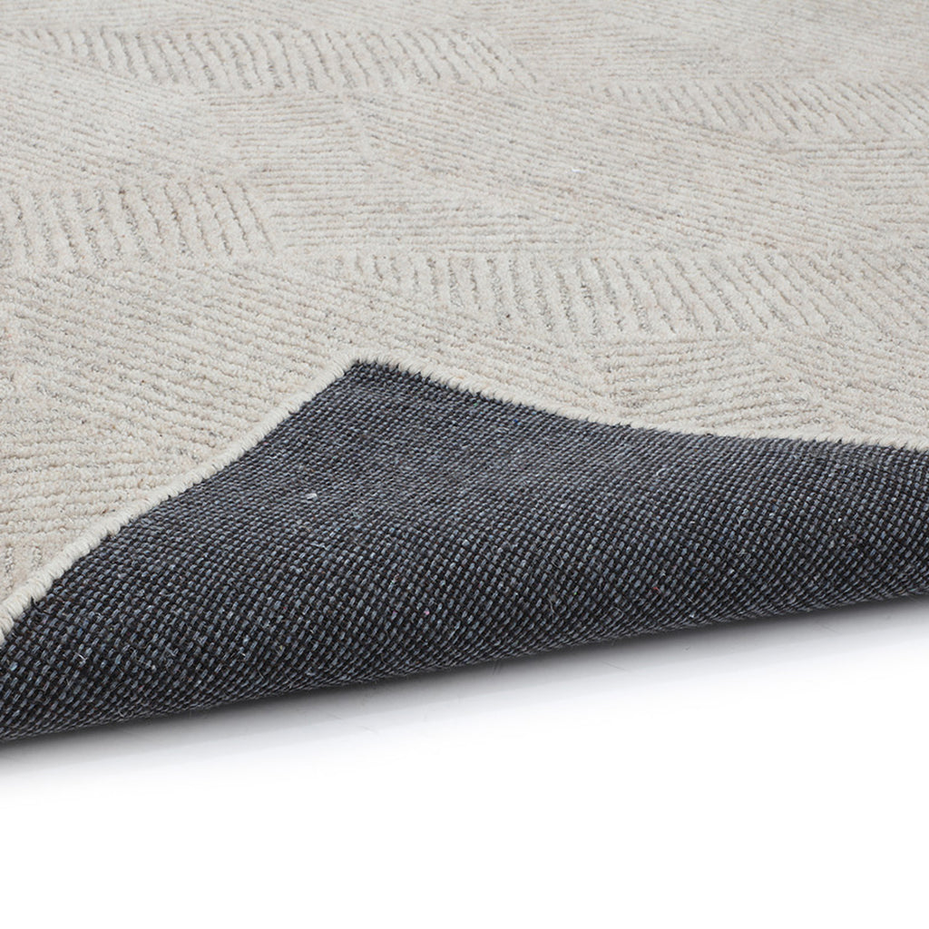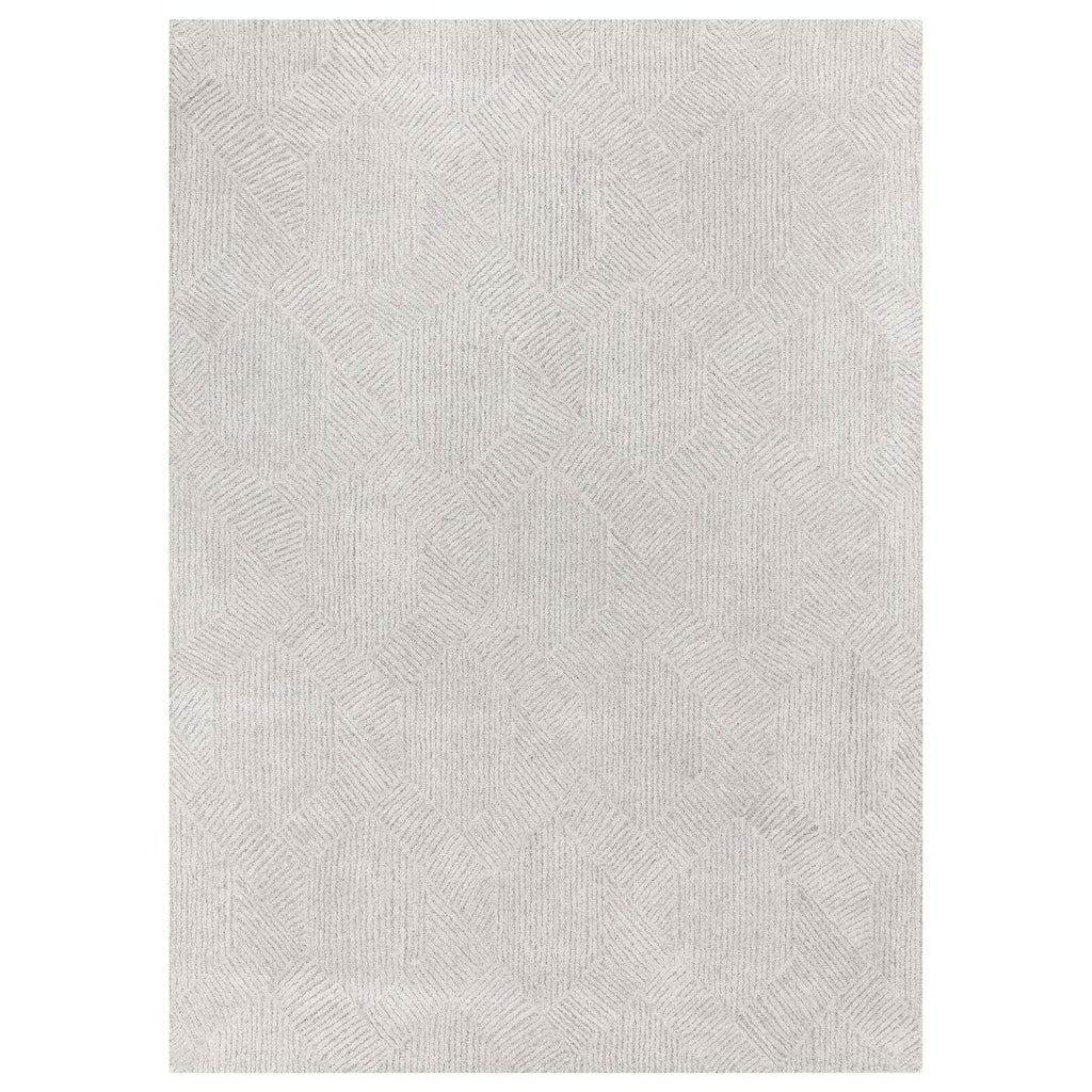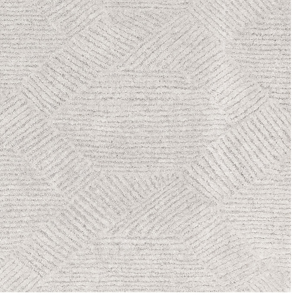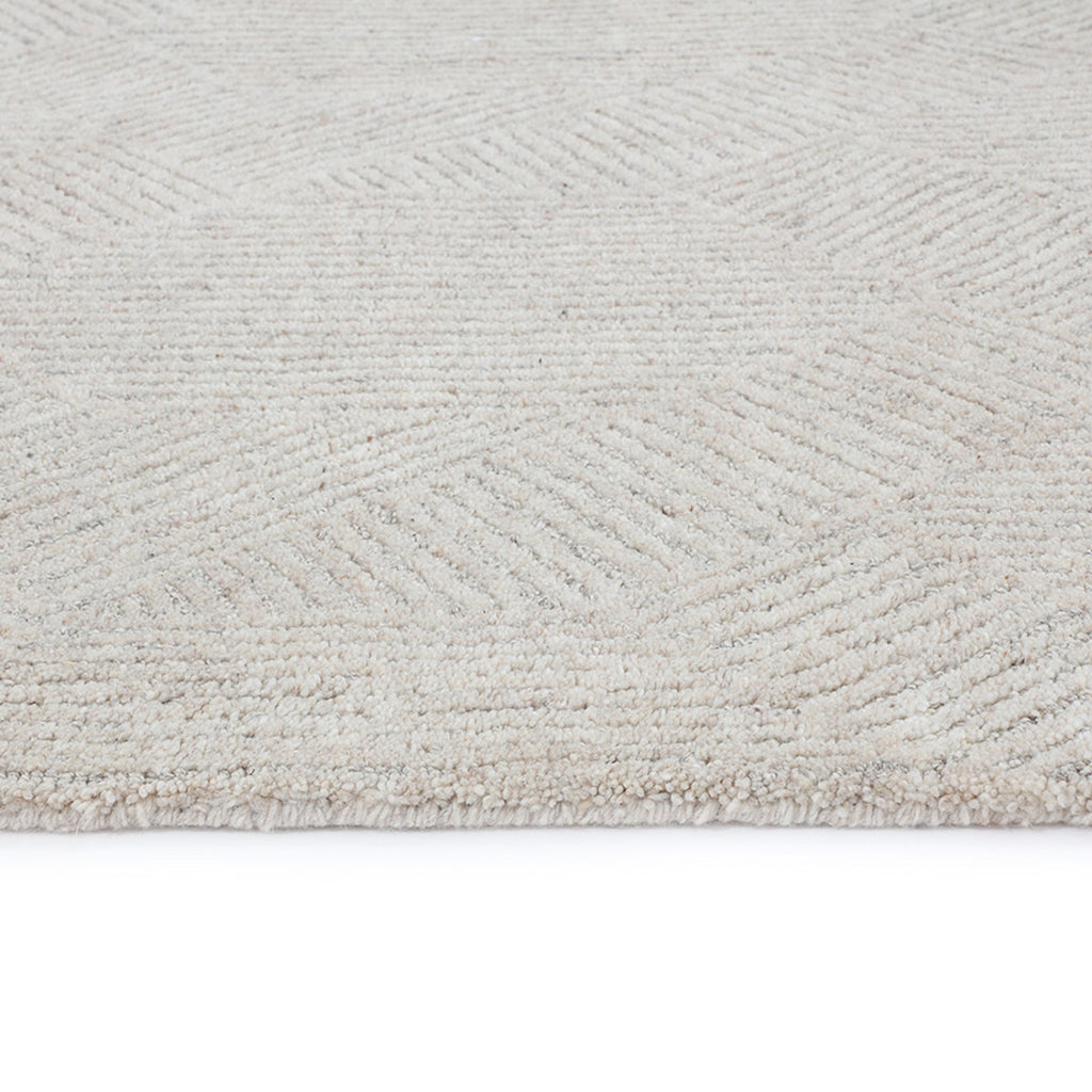 Complete modern and contemporary spaces with this hand-tufted rug. Features a subtle geometric pattern in an oatmeal/grey wool-viscose blend.