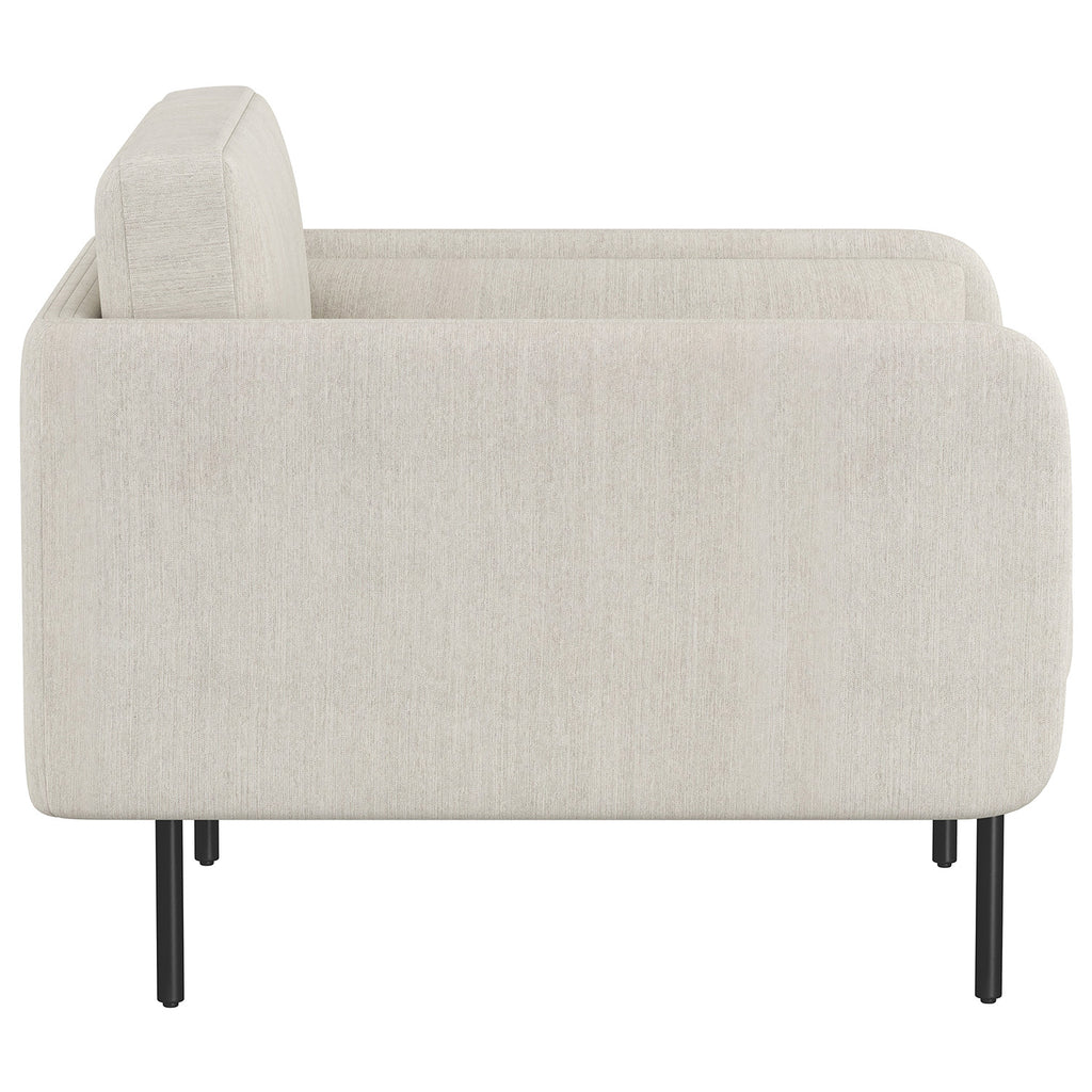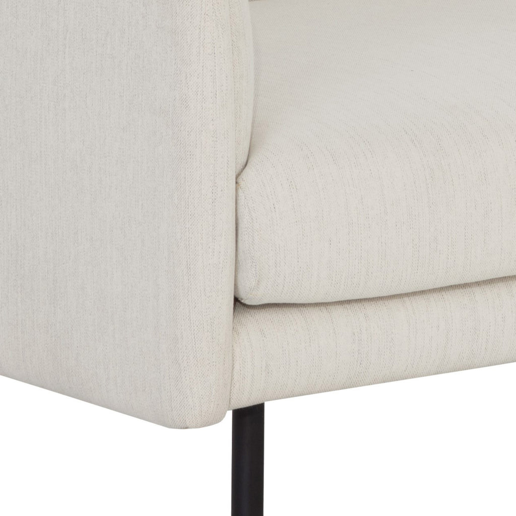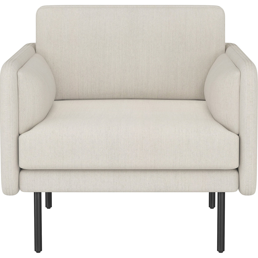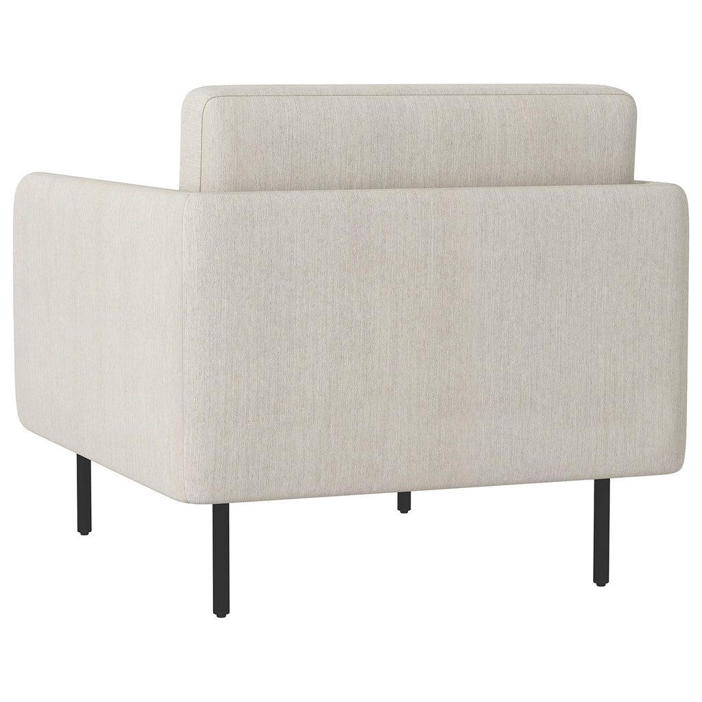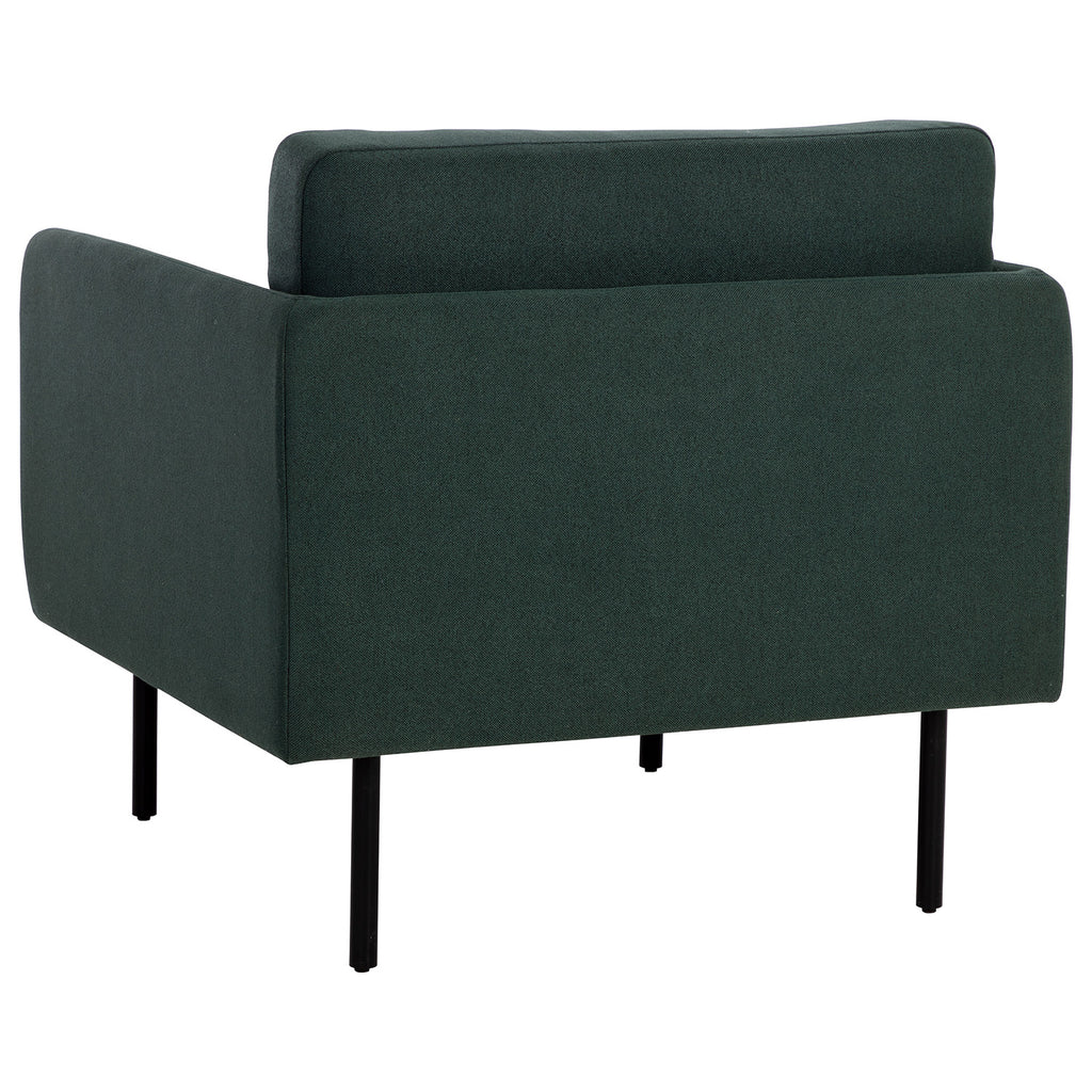 A classic and comfortable armchair that takes inspiration from mid-century designs. Stocked in mina ivory and pine fabrics with generously-cushioned seating. Completed with powder coated black metal legs. Coordinating sofa also available.
