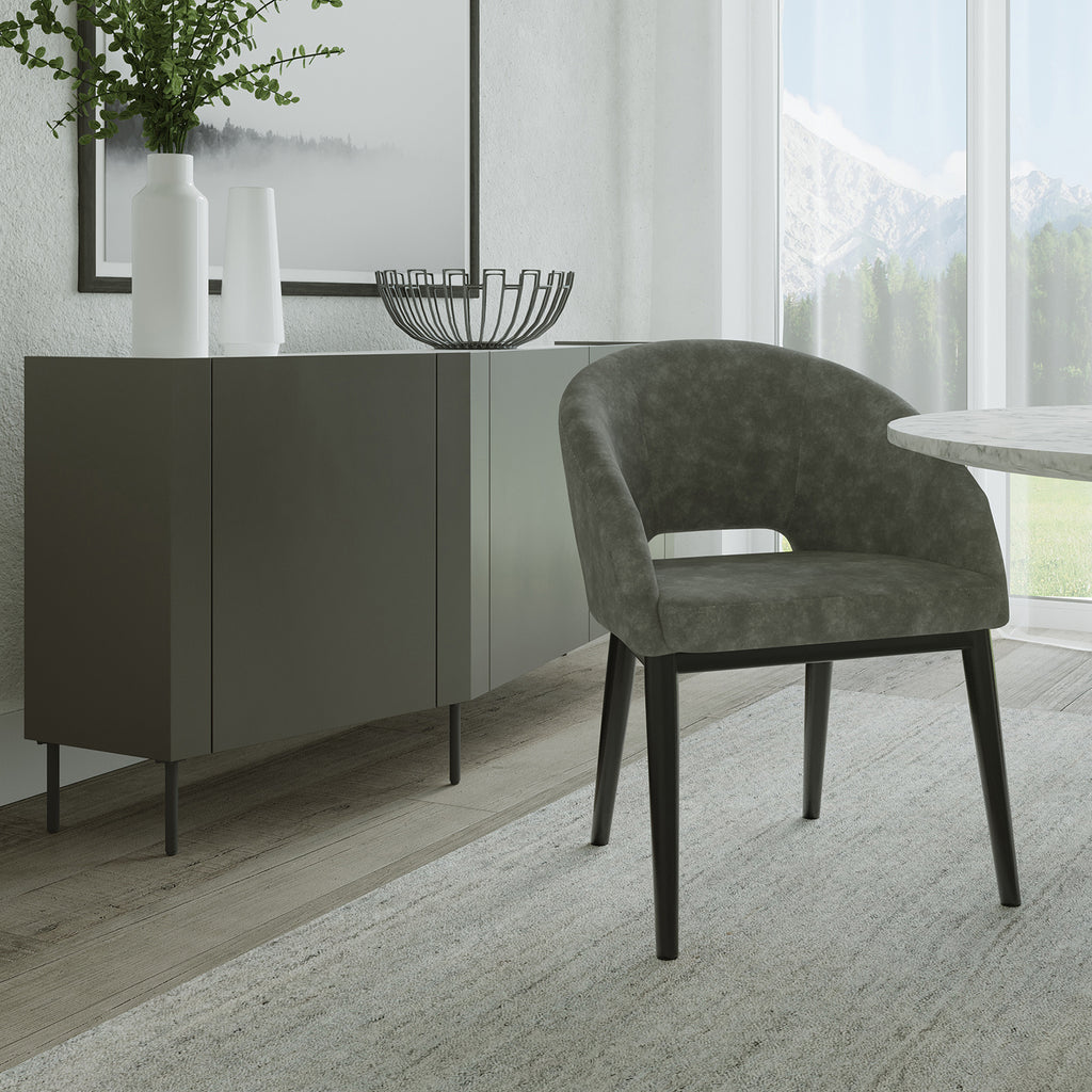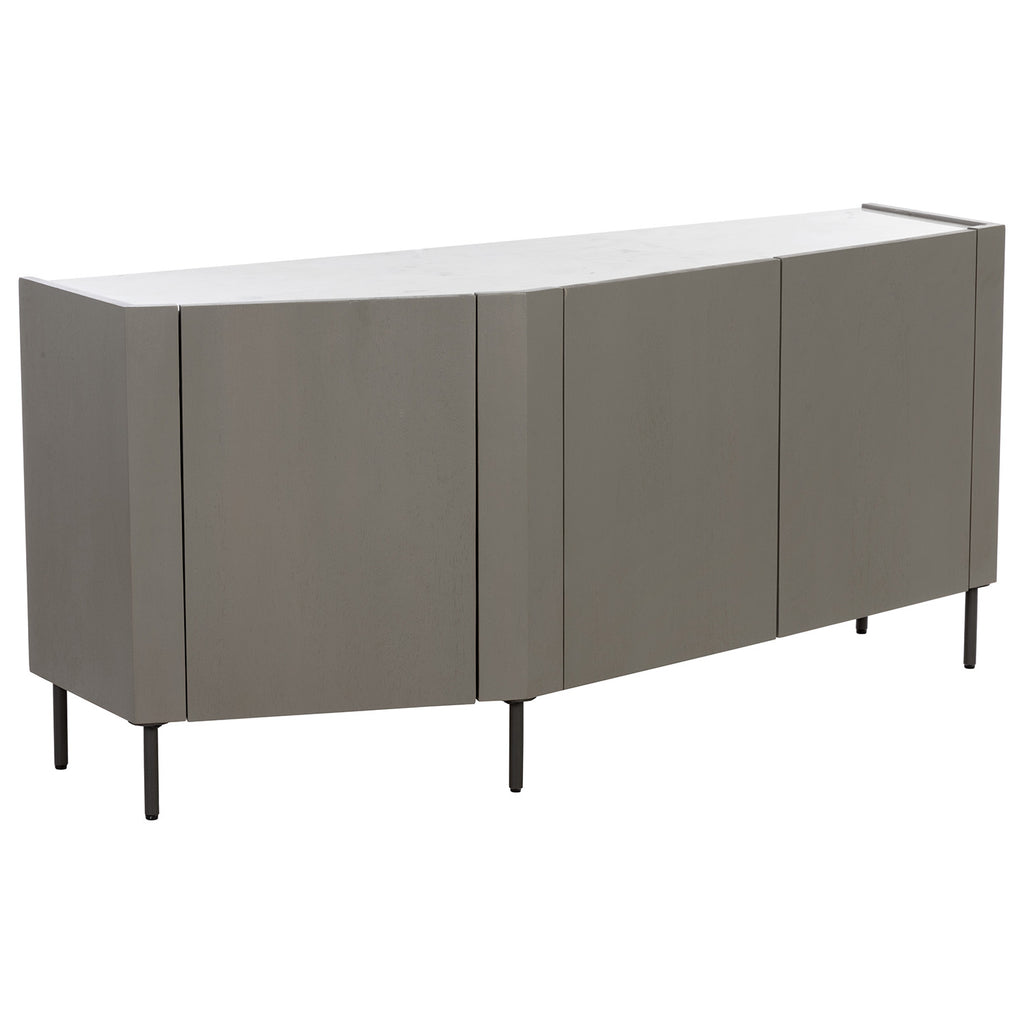 Featuring an angular shape, this unconventional sideboard is designed with modern appeal. Crafted with a grey solid mango wood frame and a white marble top. Black powder coated steel legs complete the look.